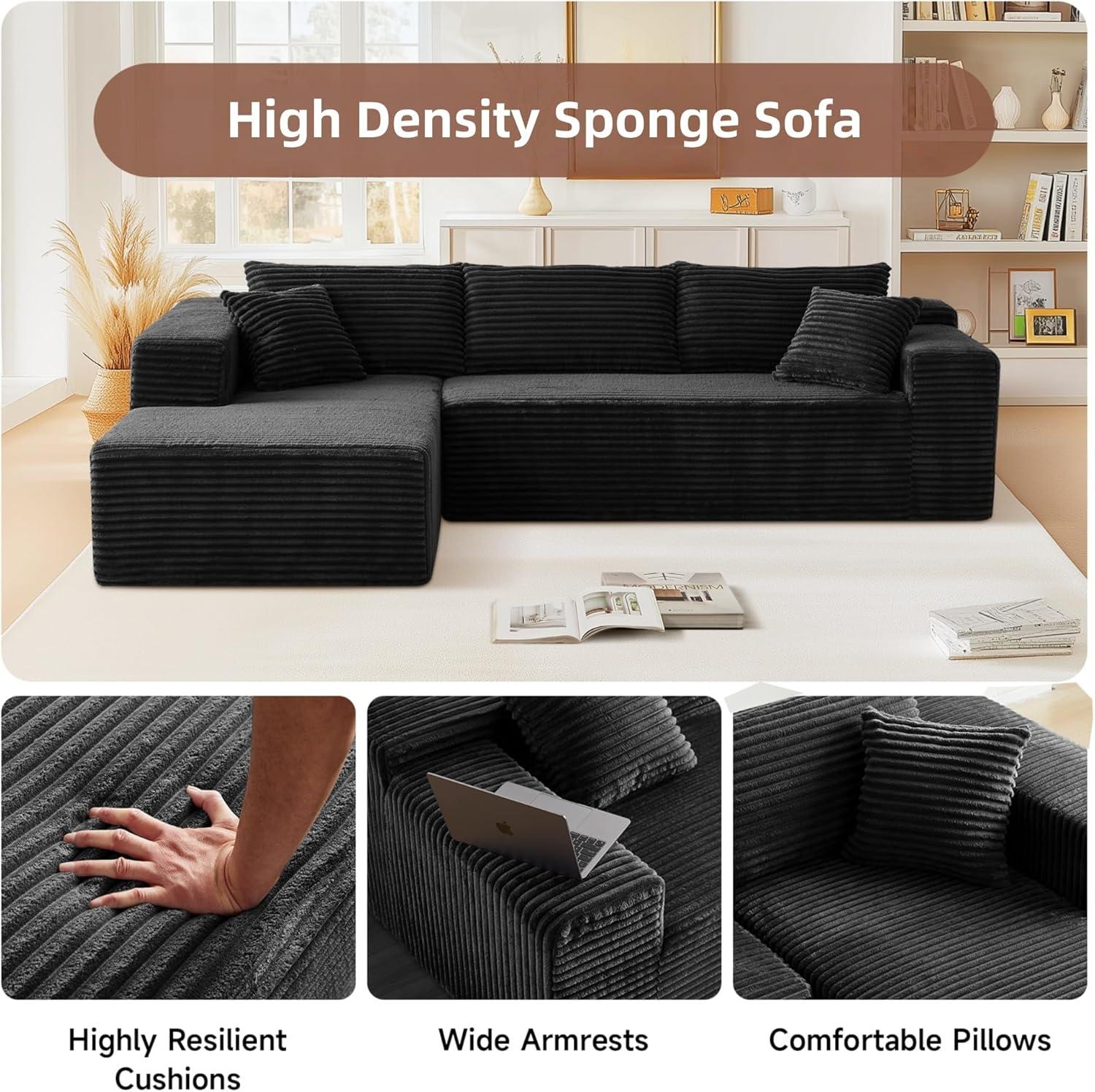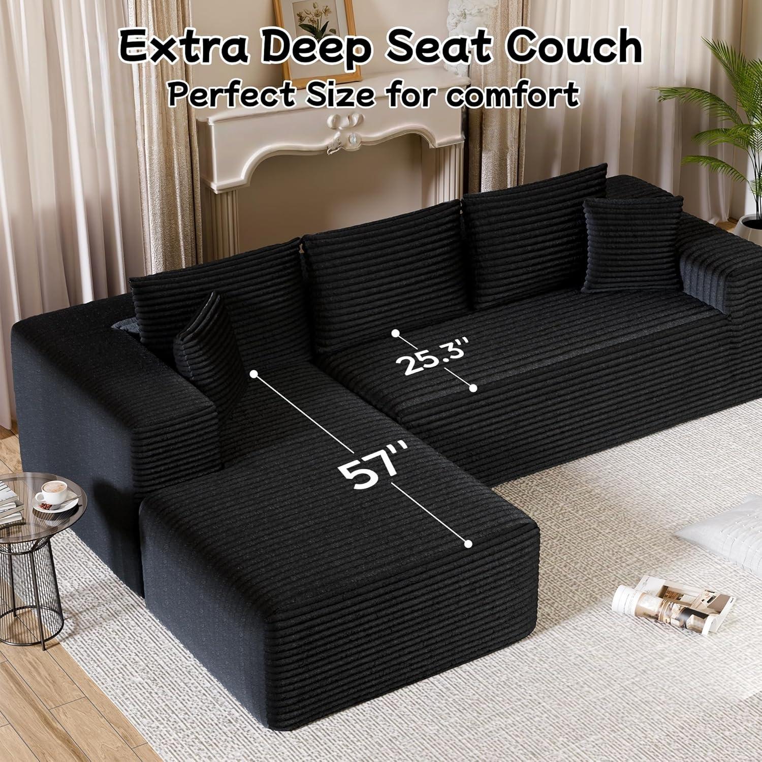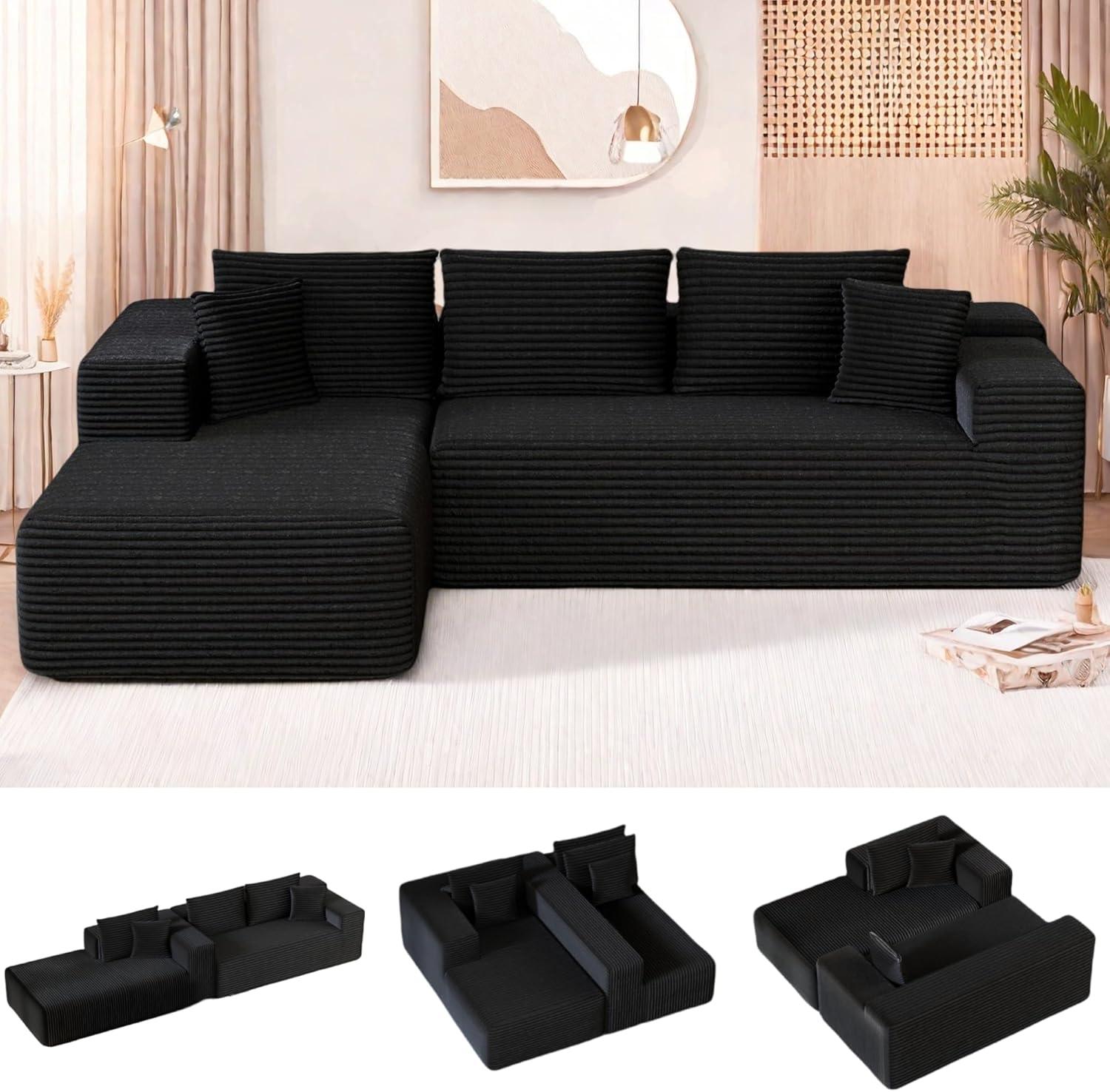 The sectional’s deep 25.3-inch seat depth and high-resilience foam cushions provide sustained support and plush comfort, perfect for lounging, working remotely, or casual napping. The modular design is adaptable, allowing us to rearrange the L-shaped layout to fit our living space perfectly.Setup was impressively simple — no installation required,just unpacking and letting the couch fluff up naturally within a few days. This combo of comfort, convenience, and durability makes it reliable for everyday living.