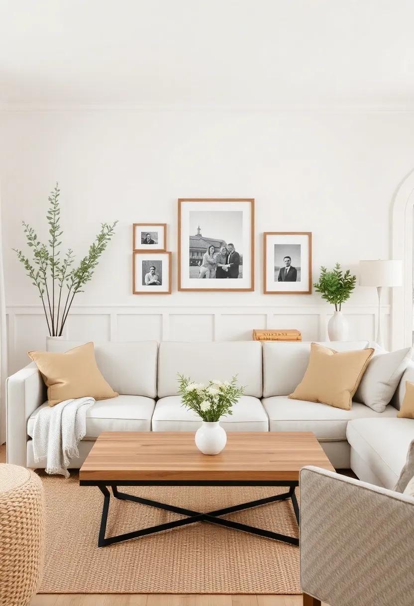 Bringing a personal touch to your living space infuses it with warmth and familiarity. Displaying family photos in simple frames not only highlights cherished memories but also fosters a sense of belonging. Opt for matte black or white wooden frames to maintain the soothing neutral palette while adding depth to your decor. Create a gallery wall that showcases varying sizes of frames for visual interest,or consider clustering smaller frames on a side table for an intimate vignette. Incorporating natural elements, like a few framed photos alongside potted plants or rustic candle holders, can further enhance the cozy ambiance.