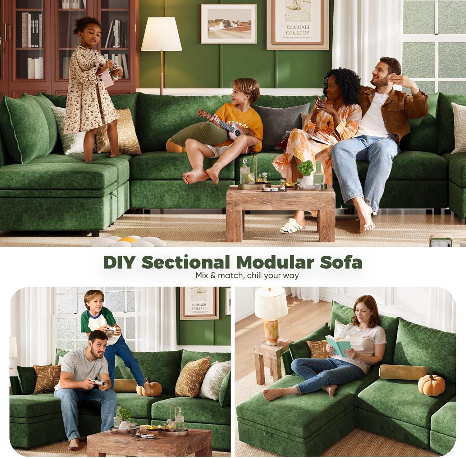 Balancing style with functionality, this modular sectional offers an ideal solution for contemporary apartment dwellers. Its chic mid-century silhouette paired with the plush, soft-to-the-touch chenille upholstery creates a refined yet inviting aesthetic that effortlessly complements modern interior decor. The deep 24.5″ seats provide ample lounging space without overwhelming smaller living areas,making it a perfect fit for apartments where space is at a premium. Plus,the vibrant green color brightens the room with a fresh pop,while the modular design lets us customize configurations to perfectly suit any floor plan or seating arrangement.