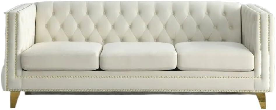 As we’ve explored, the Beige Velvet sofa with its tufted elegance and thoughtful craftsmanship brings together both style and lasting comfort in one stunning package. Whether placed in your living room, bedroom, or office, its solid wood frame, plush cushions, and metal legs promise durability while inviting you to unwind after a busy day. The delicate nailhead trim adds that handcrafted touch of sophistication, making this sofa not just a piece of furniture, but a centerpiece that complements any decor.If you’re looking for a cozy yet refined seating option that blends classic charm with modern functionality, this sofa might just be the perfect fit for your space.