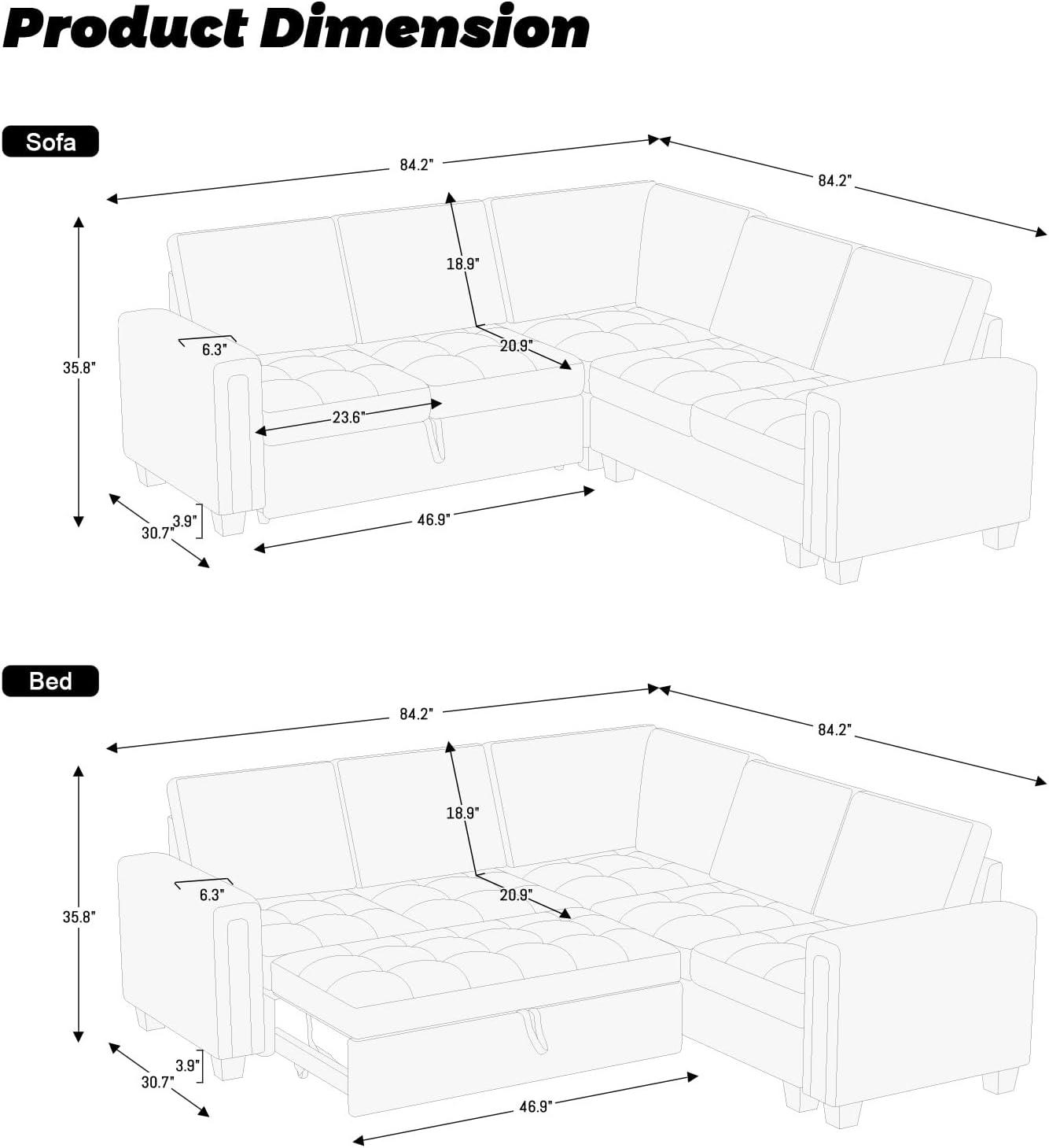 Embracing a modular design philosophy, this sectional sofa redefines flexibility by allowing us to customize the arrangement effortlessly, adapting to any living space or layout.whether positioned to maximize corner spaces or broken down into smaller components,its versatility ensures a seamless fit in apartments,cozy living rooms,or open-plan areas. The pull-out sleeper functionality adds remarkable practicality, converting the comfortable L-shaped seating into a spacious bed ideal for overnight guests or relaxed movie nights. This dual-purpose capability makes it an excellent choice for those seeking to save space without sacrificing comfort.