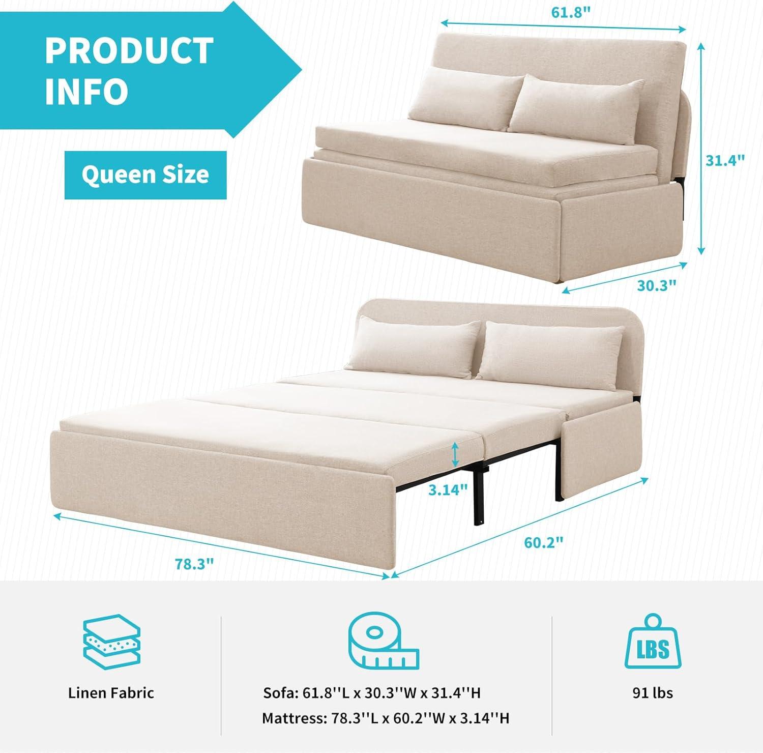 - 2-in-1 function: Sofa during the day, queen-sized bed at night