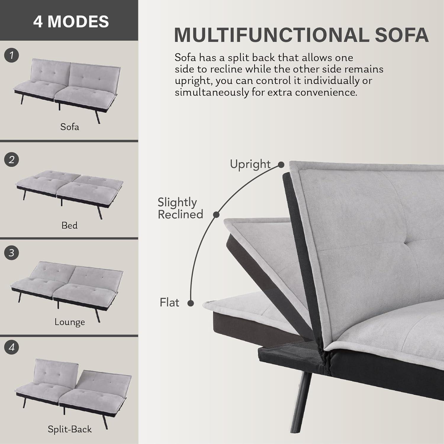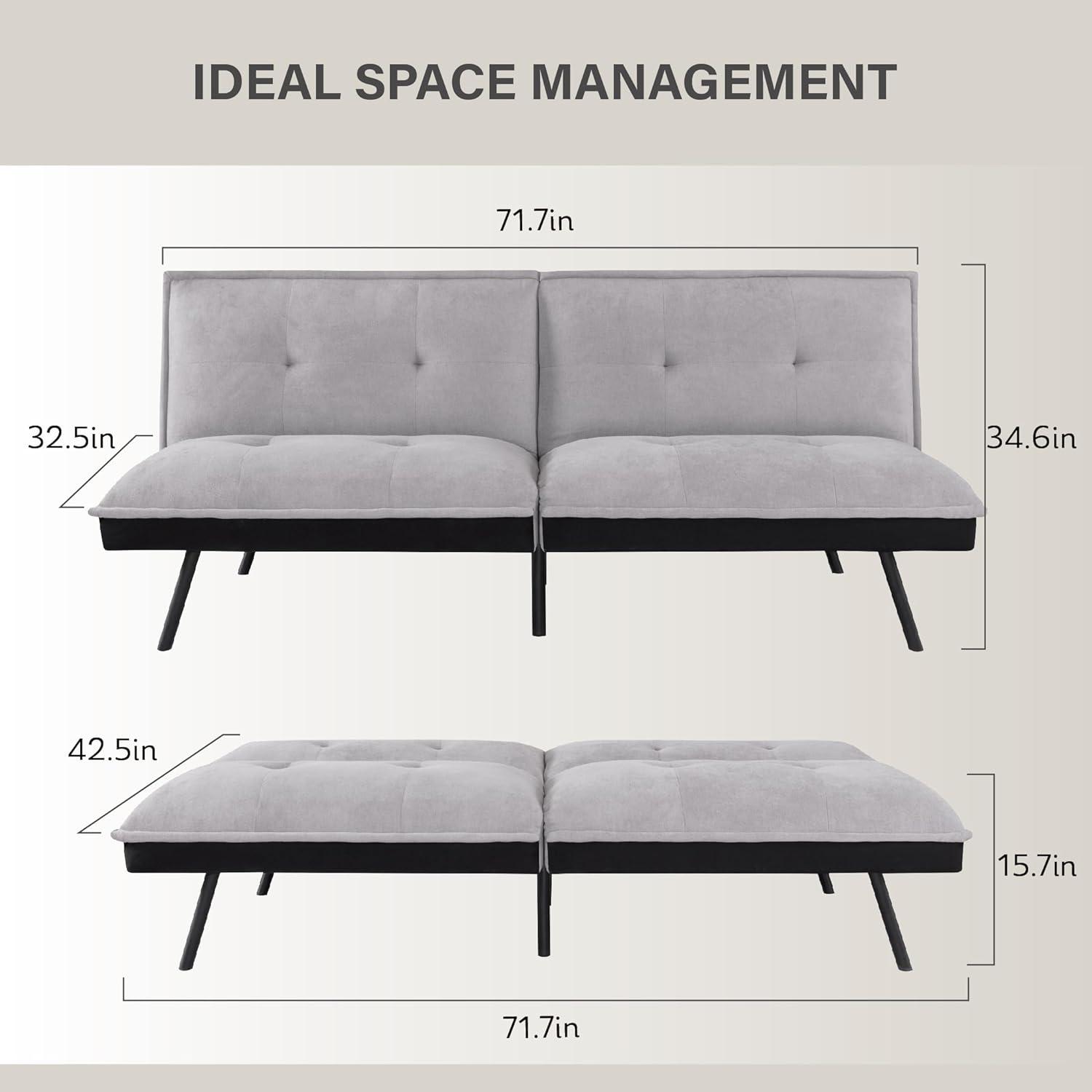 This versatile piece effortlessly shifts from a stylish seating option to a comfortable sleeping surface, adapting perfectly to a variety of living spaces. Its multi-functional design allows for easy conversion thanks to the adjustable backrest, making it ideal for small apartments, guest rooms, or even office lounges.Compact yet accommodating, the sofa measures 71.7”L x 34.6”W x 32.5”H in sofa mode and extends to a bed size of 71.7”L x 42.5”W x 15.7”H,ensuring it fits snugly without overwhelming the room.