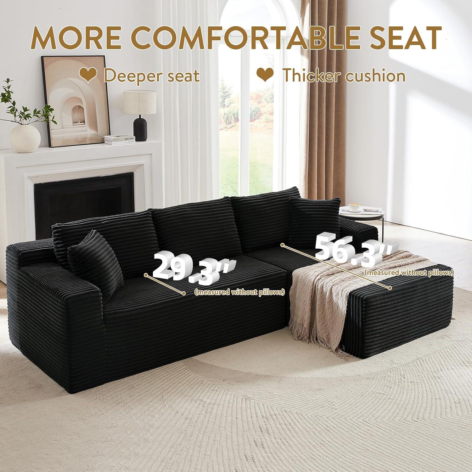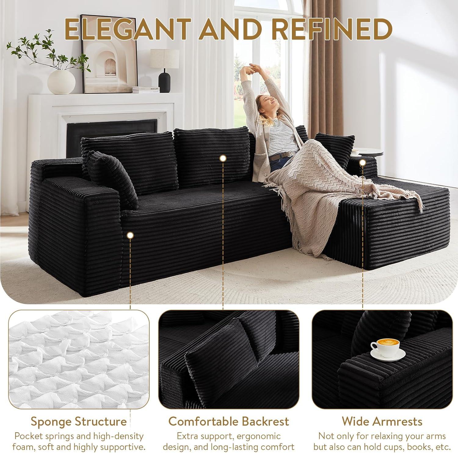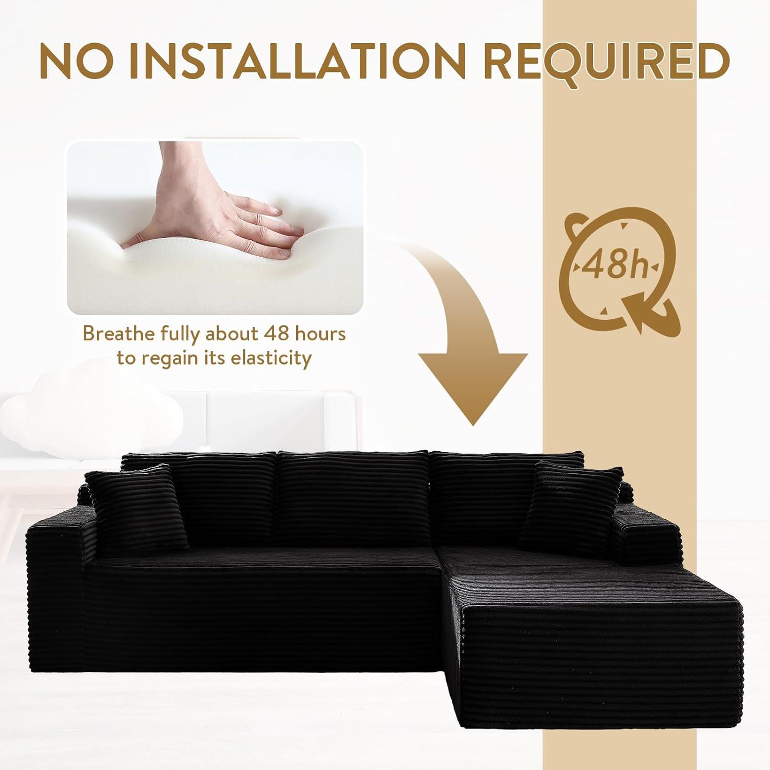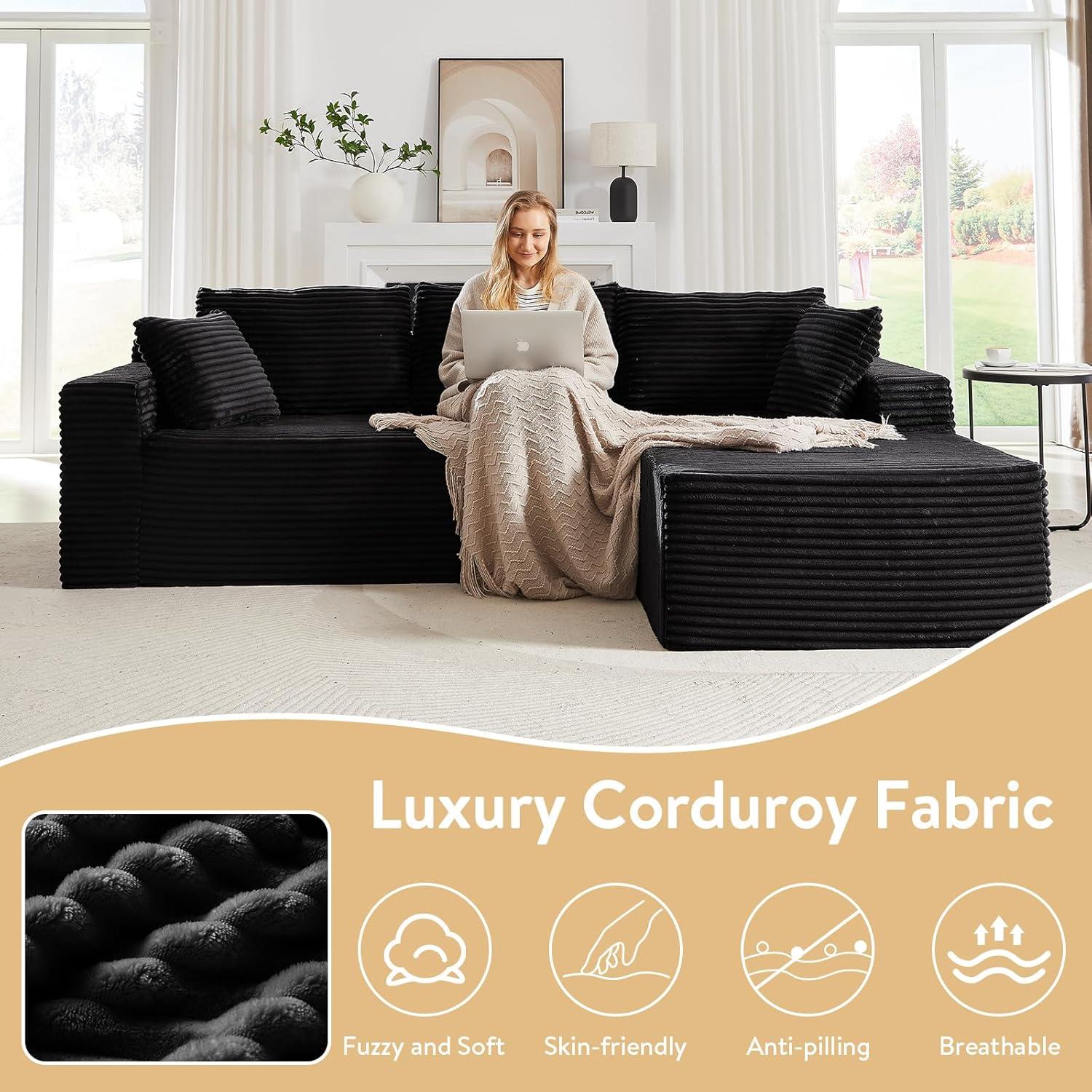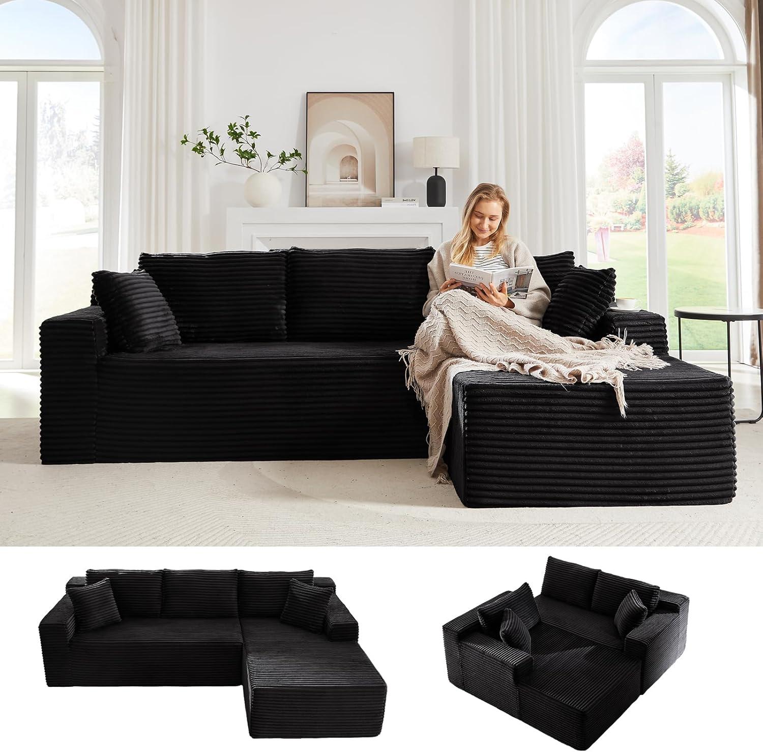 Light skimming the corduroy picks out ​the tiny ridges and makes the black ‌read warmer than ⁣the photos. it’s ​labeled the⁣ Cloud Sectional Couch with L-Shape Chaise (you’ll probably shorten it to the Cloud sectional), and in your living room it settles in as something considerable but quietly composed. At roughly 105⁣ inches the chaise ⁤pulls the ⁣eye along the room’s length; up close your hand meets a soft corduroy nap and cushions that yield and then rebound with a measured spring. Seen from across the room the modular silhouette reads modern and low, while the ⁢fabric and seams ⁢lend a lived-in softness you notice when you sit.
