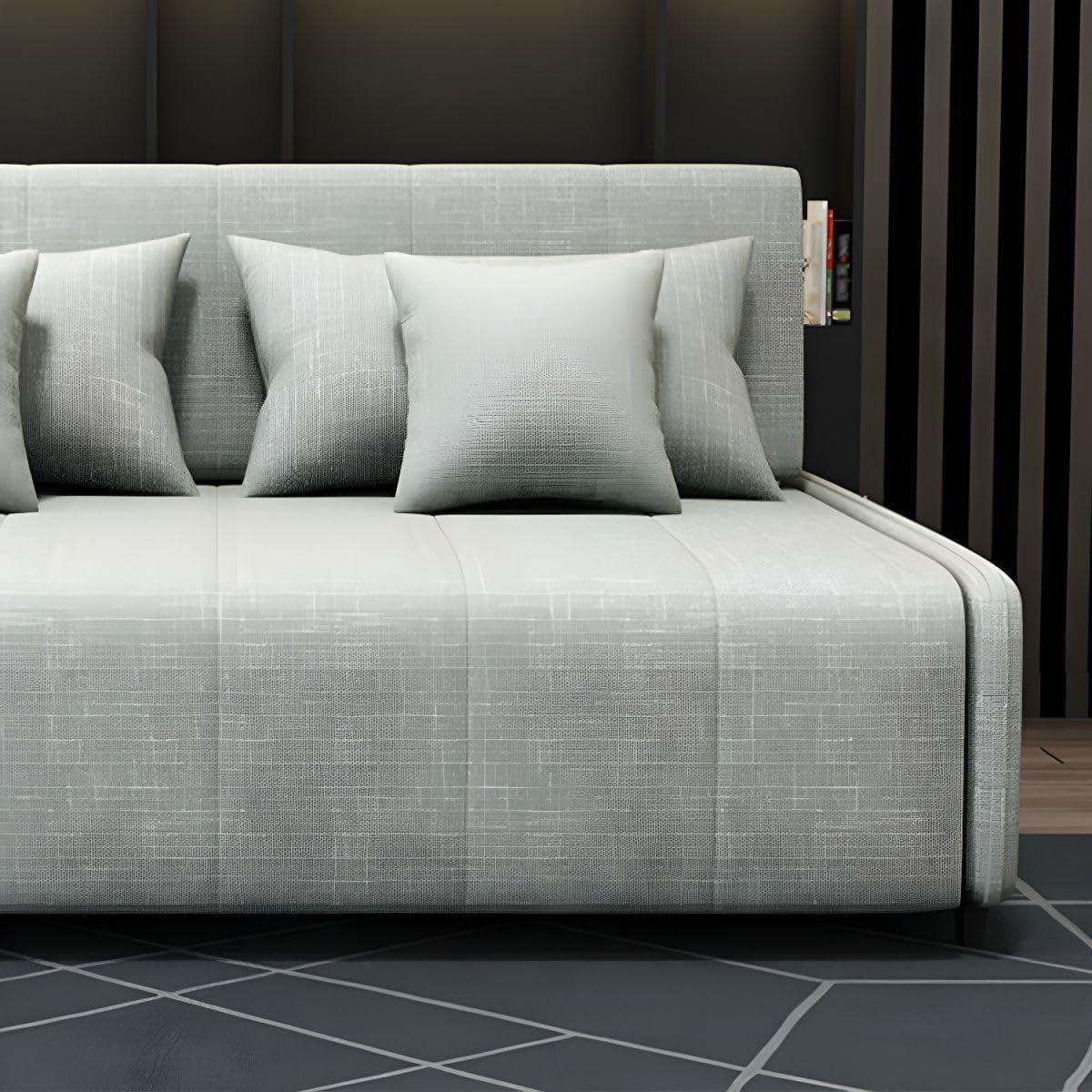 Maintaining this sofa’s pristine look is effortless thanks to its cotton-linen blend upholstery, which resists odors and stains. A simple damp cloth wipes away spills without damaging the fabric, making it ideal for busy rooms or apartments. Here are other tips to optimize its dual functionality: