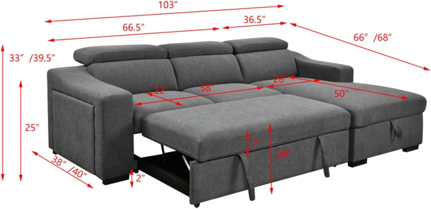 In wrapping up, the 103” Convertible L-Shaped Sectional Sofa truly blends smart functionality with space-saving comfort. From the versatile pull-out sleeper bed and spacious storage chaise to the adjustable headrests and built-in USB charging port, every feature is designed to enhance your living space experience. Its durable construction and modern design make it a reliable centerpiece for any home, offering both style and practicality without compromise. Whether you’re relaxing, entertaining guests, or needing extra storage, this sectional adapts effortlessly to your needs.