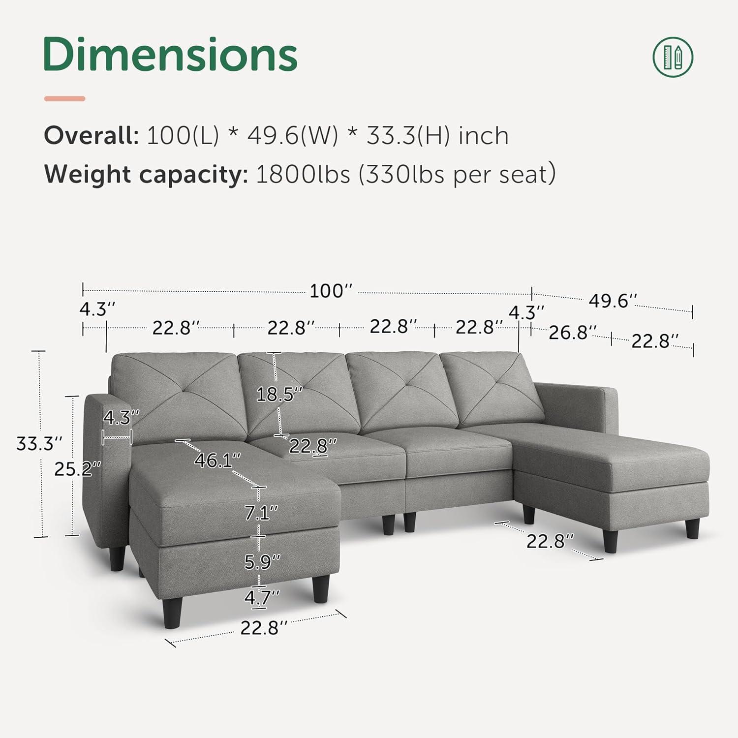 | Overall Dimensions | 49.6″ D x 100″ W x 34.3″ H | Fits comfortably in various living spaces |