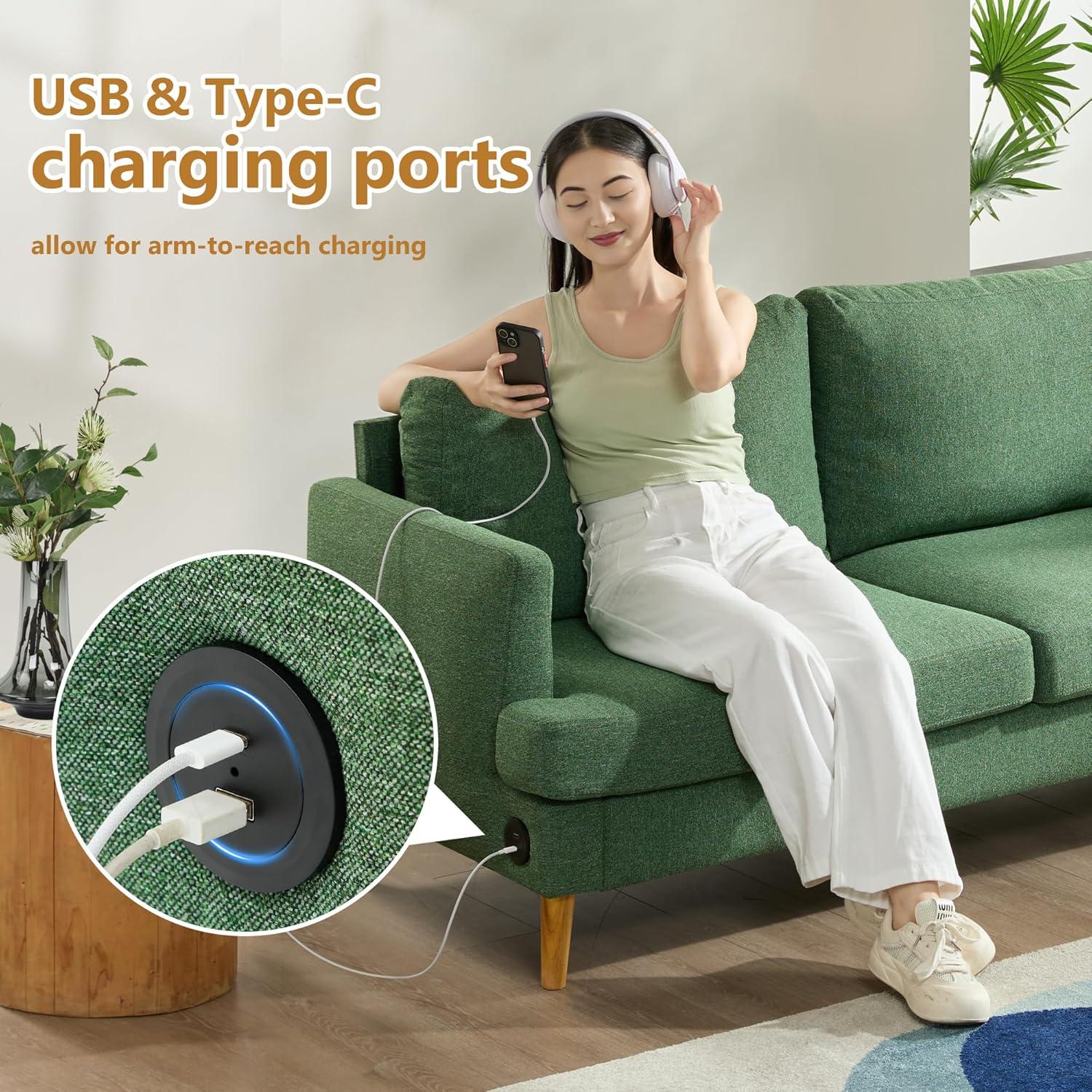 After spending considerable time testing this loveseat, we appreciate how well it balances style, comfort, and functionality. The high-resilience sponge cushion maintains its supportive form without sagging, even after extended use, while the fluffy back cushions provide a cozy resting experience once fully fluffed.Its solid wood legs not only add to the aesthetic with a mid-century modern flair but also contribute to impressive stability, comfortably supporting up to 550 pounds. The inclusion of USB and Type-C ports enhances convenience, making it easy to stay connected whether you’re working or relaxing. Plus, the removable, breathable linen covers are both skin-friendly and practical, allowing for easy cleaning and long-term durability.