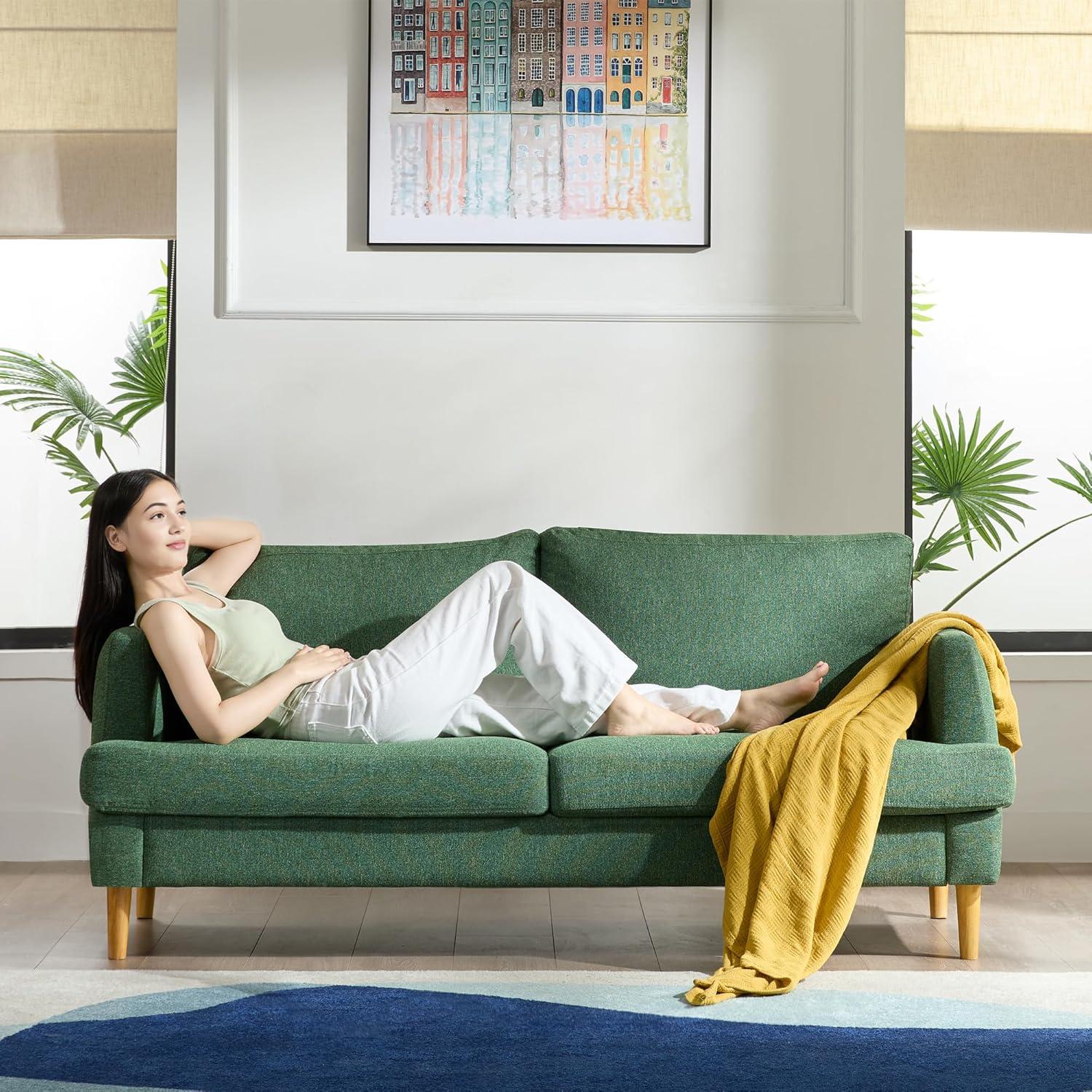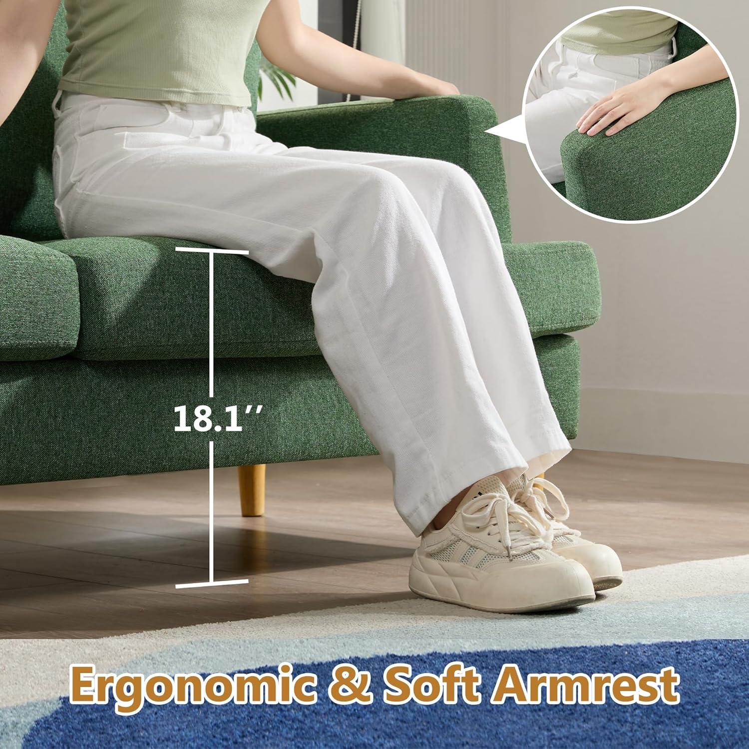 For compact living spaces like apartments and bedrooms, this small green loveseat strikes a perfect balance between style and functionality. Its 60-inch seat width comfortably accommodates two adults without overwhelming the room, making it ideal for cozy reading nooks or a relaxed spot for casual work. The elegant mid-century modern design blends seamlessly with minimalist decor, while the breathable linen fabric ensures comfort during extended use. Plus, the solid wood legs provide sturdy support and stability, holding up to 550 lbs—perfect for homes where reliable durability is a must.
