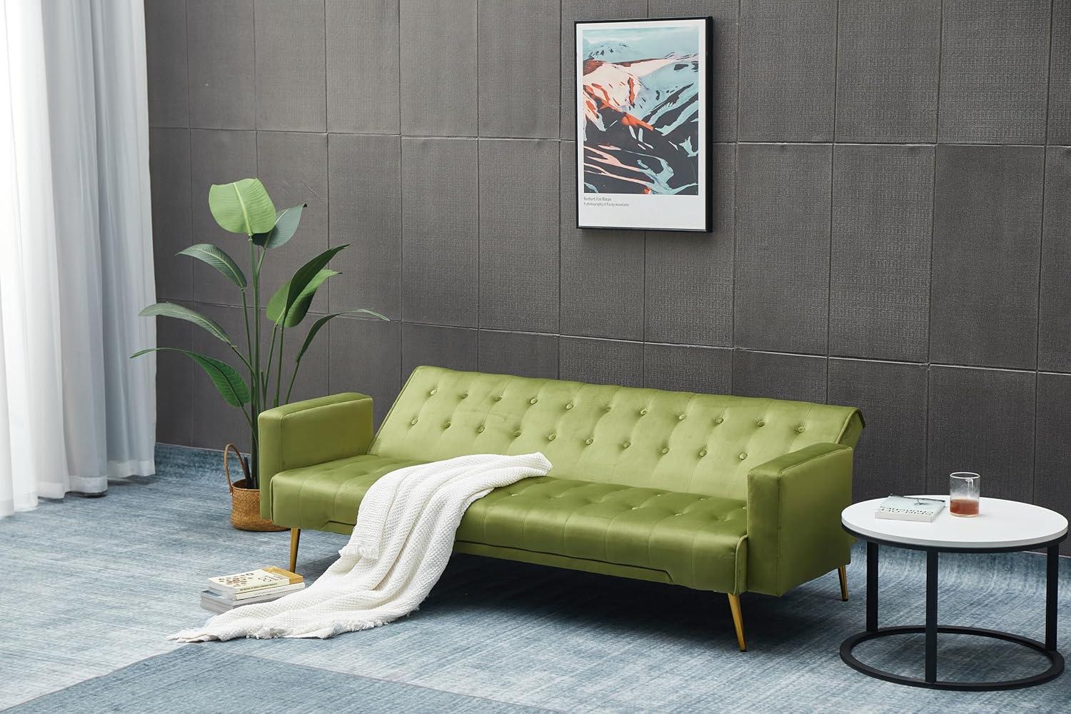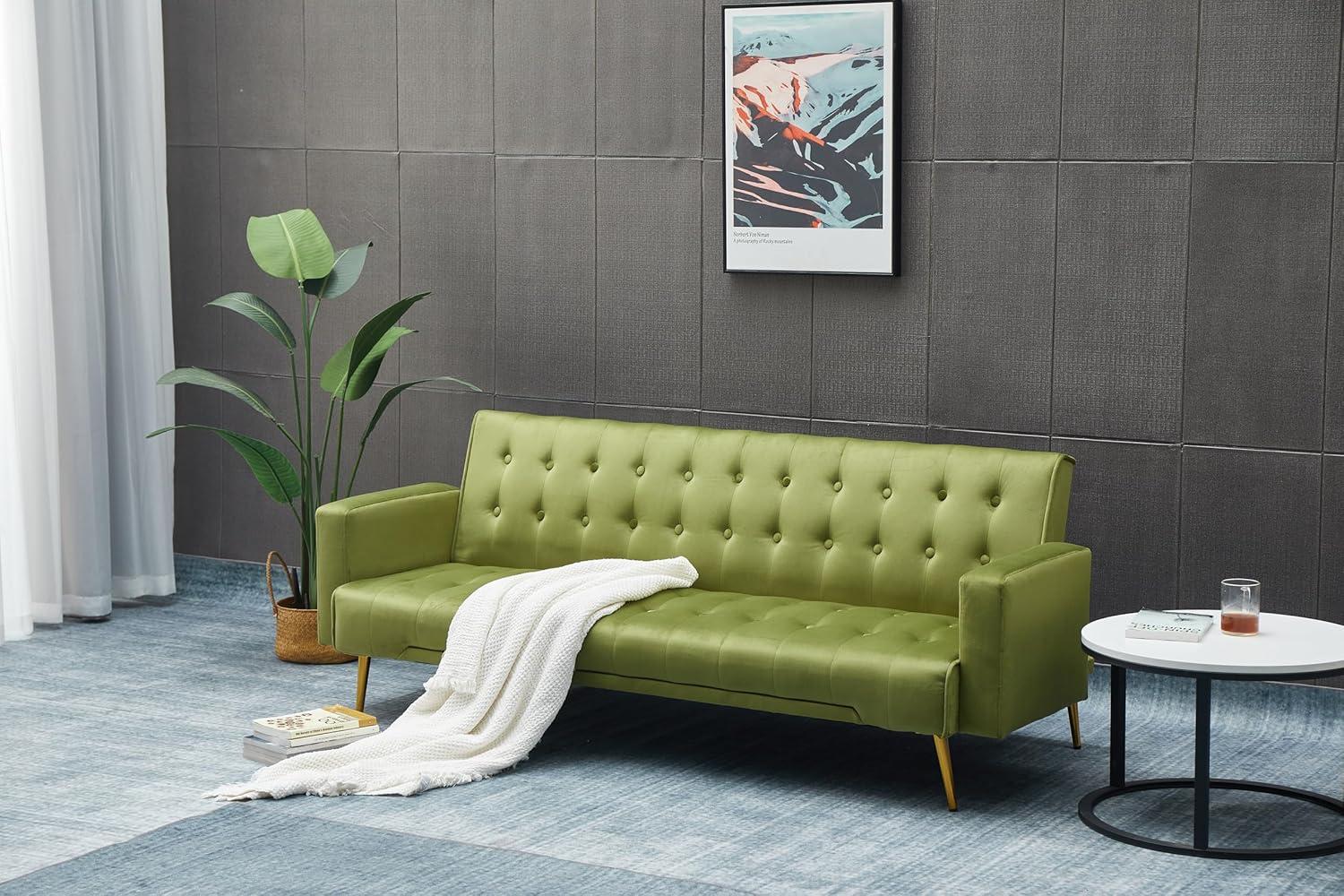 This piece is a superb addition for those ⁢looking to maximize comfort without sacrificing style, especially in apartments or ⁢compact living⁣ spaces. Measuring just over 75 inches, its elegant velvet upholstery paired with tufted‌ buttoned details brings a refined touch that elevates any room’s atmosphere.⁢ the adjustable back allows​ us‌ to effortlessly switch between a cozy sofa and a ⁢flat⁢ bed, making it a versatile solution whether we have guests staying over or simply ⁣want to relax after a ⁤long day. Its sleek gold metal legs add modern flair without taking up extra visual space,ensuring smaller rooms feel open and⁤ chic rather than crowded.