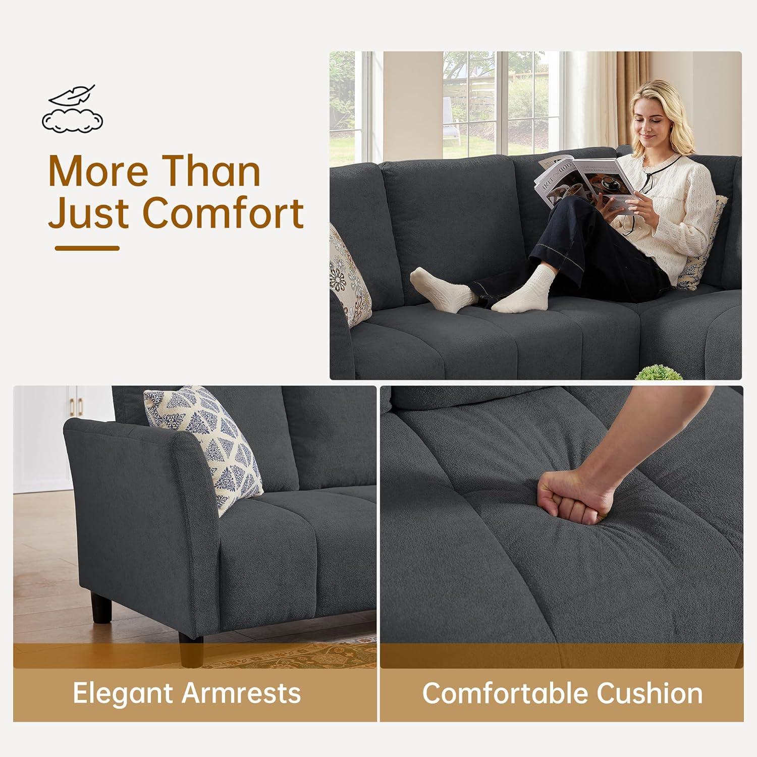At first a presence, the L Shaped Couch Modern Sectional Sofa, 102” Sectional Sofa with back Cushions, Ottoman with Storage Corner Couch for Living Room Apartment Office, Dark Grey slowly takes on the quiet rhythms of the home; over time its cushions soften into habitual seats and its surface gathers the small traces of daily life. In regular household rhythms it reshapes how corners are used and where a book or a blanket is left, and its comfort shifts from deliberate support to familiar ease. Fabric shows faint marks of use and the ottoman becomes a more ordinary stopping place in the flow of days. After months it settles into being part of the room and simply stays.
