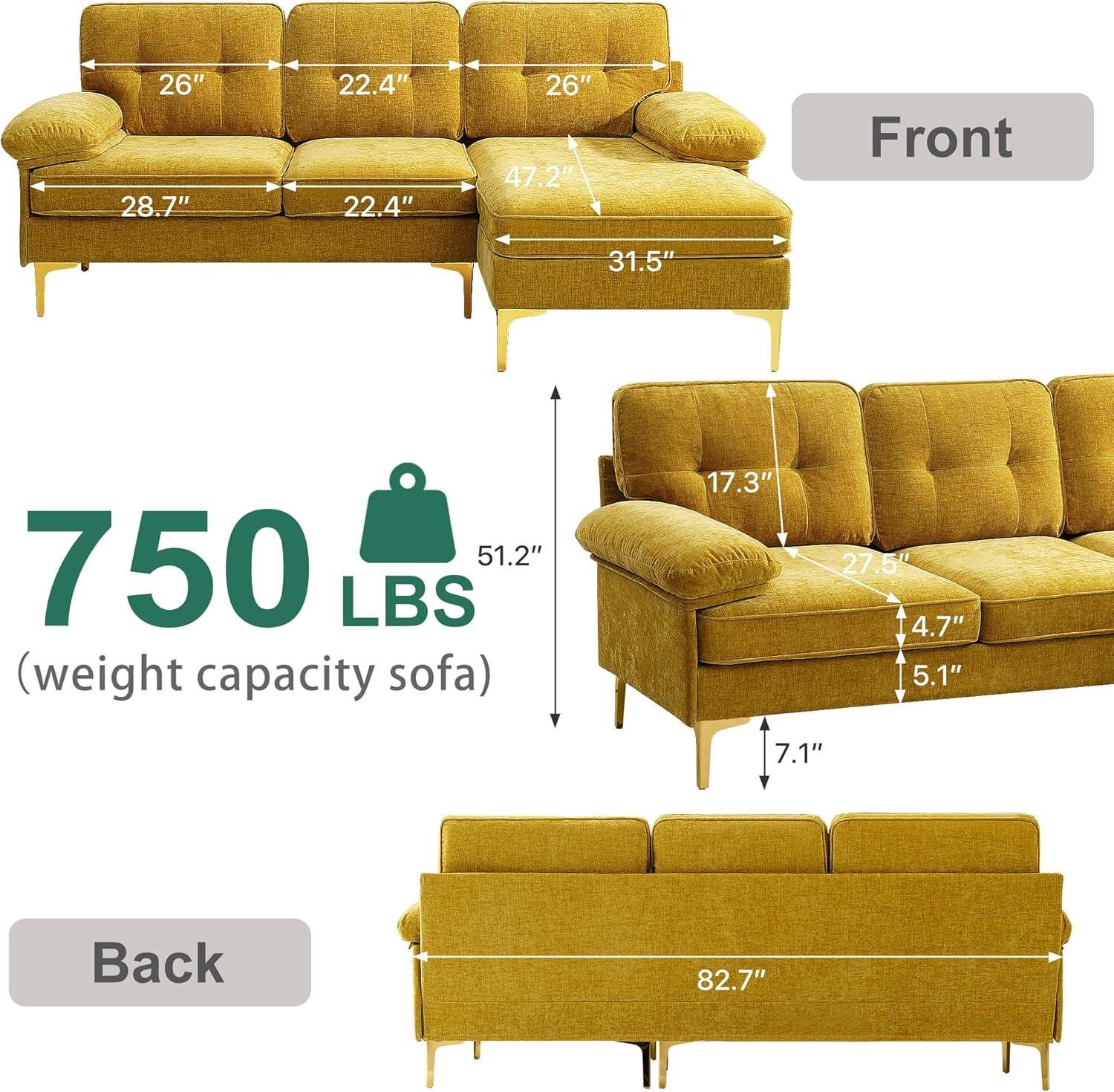When ⁣it comes to furnishing⁢ compact areas, ‌this‍ sectional sofa impresses with its ⁣thoughtfully crafted design tailored for ⁤small living spaces.⁣ Its L-shaped configuration⁤ efficiently maximizes corner space, allowing us to ‍comfortably seat 3-4 ⁢people without overwhelming the room. The vibrant yellow chenille ⁣fabric ⁣not only adds ⁢a ‌cheerful pop‌ of color but also features a unique texture​ that feels soft ⁤and breathable against⁤ the skin—an ideal⁤ choice for ⁢those sensitive to odors or with children and ⁣pregnant family members. One of the highlights is⁣ the removable, washable covers‌ on both back and ‌seat cushions, making upkeep surprisingly⁤ simple and perfect⁢ for everyday living.
