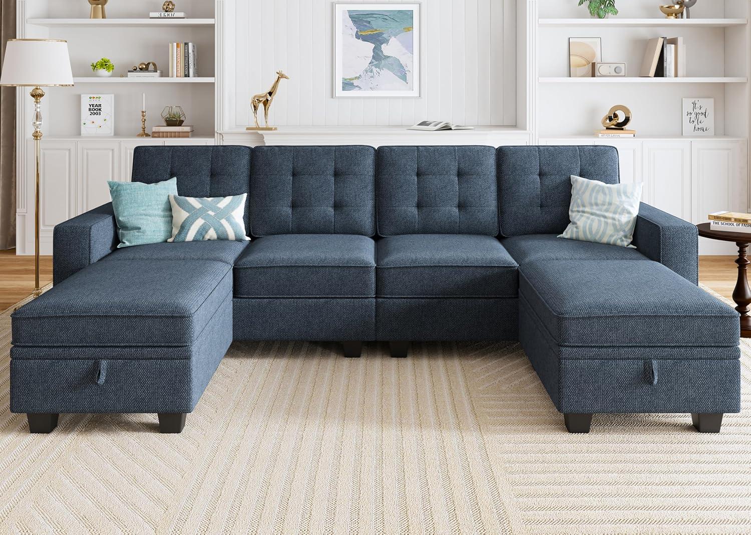 with the HONBAY U Shaped Couch with storage Sectional Sofa with Chaises for Living Room, Blue in ⁢place, you find‌ it settles into the room over time, its outline softening as the space is used. In daily routines the chaises gather blankets and a crease⁣ forms where you sit most, cushions loosening into a habitual comfort while the fabric picks up the small rubs and quiet wear of regular life. It turns up in the repeated motions ‍of ⁣mornings and evenings—the empty mug⁢ on⁣ the arm, the book left ⁤open, ‌the foot that ⁢always finds the same patch—becoming part of your room’s rhythms. Slowly, it just⁣ stays.