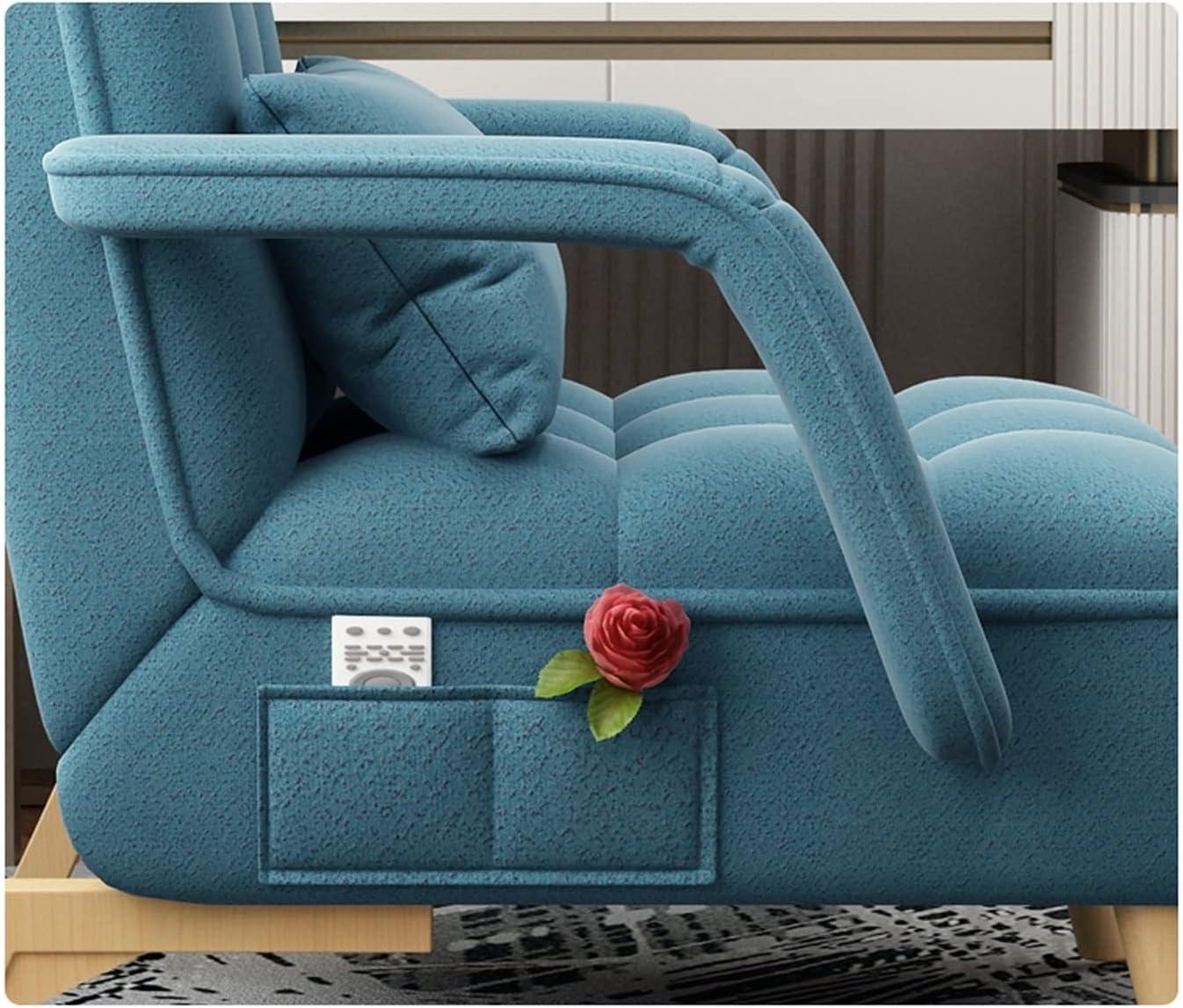 When you settle into the chair the first place your hand goes is toward the lower edge of the seat: the storage sits out of sight until you lift or slide the front cushion. That hidden well is shallow rather than cavernous, so you tend to use it for flat or compressible things — a folded throw, a pair of slippers, or the detachable pedal — rather than large boxes.The cushion cover and the widened pillow overlap the opening slightly, so reaching in requires a brief shift of the top cushion or a quick tuck aside of the pillow; those small adjustments are the kind you find yourself doing without thinking as you get comfortable.
