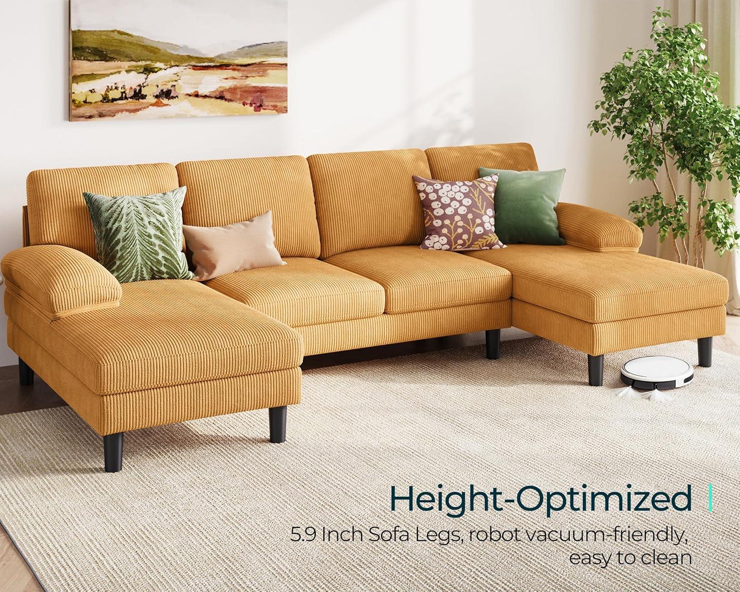 Our experience with this U-shaped sectional couch has been truly satisfying, offering an exceptional blend of style, comfort, and durability. Wrapped in⁤ elegant corduroy upholstery, it‌ instantly elevates the‍ look of our living space‌ with its‌ rich texture and⁤ vibrant yellow hue. The enhanced cushion thickness,measuring 5.9 inches,⁢ provides a plush seating experience that feels both⁤ supportive ‍and inviting. Thanks to its high-density foam filling,the cushions maintain their shape even after extended use,making relaxation effortless. The four-seat ‌design, paired with double chaises, creates ‌generous space for lounging, dining, or hosting friends and family comfortably.