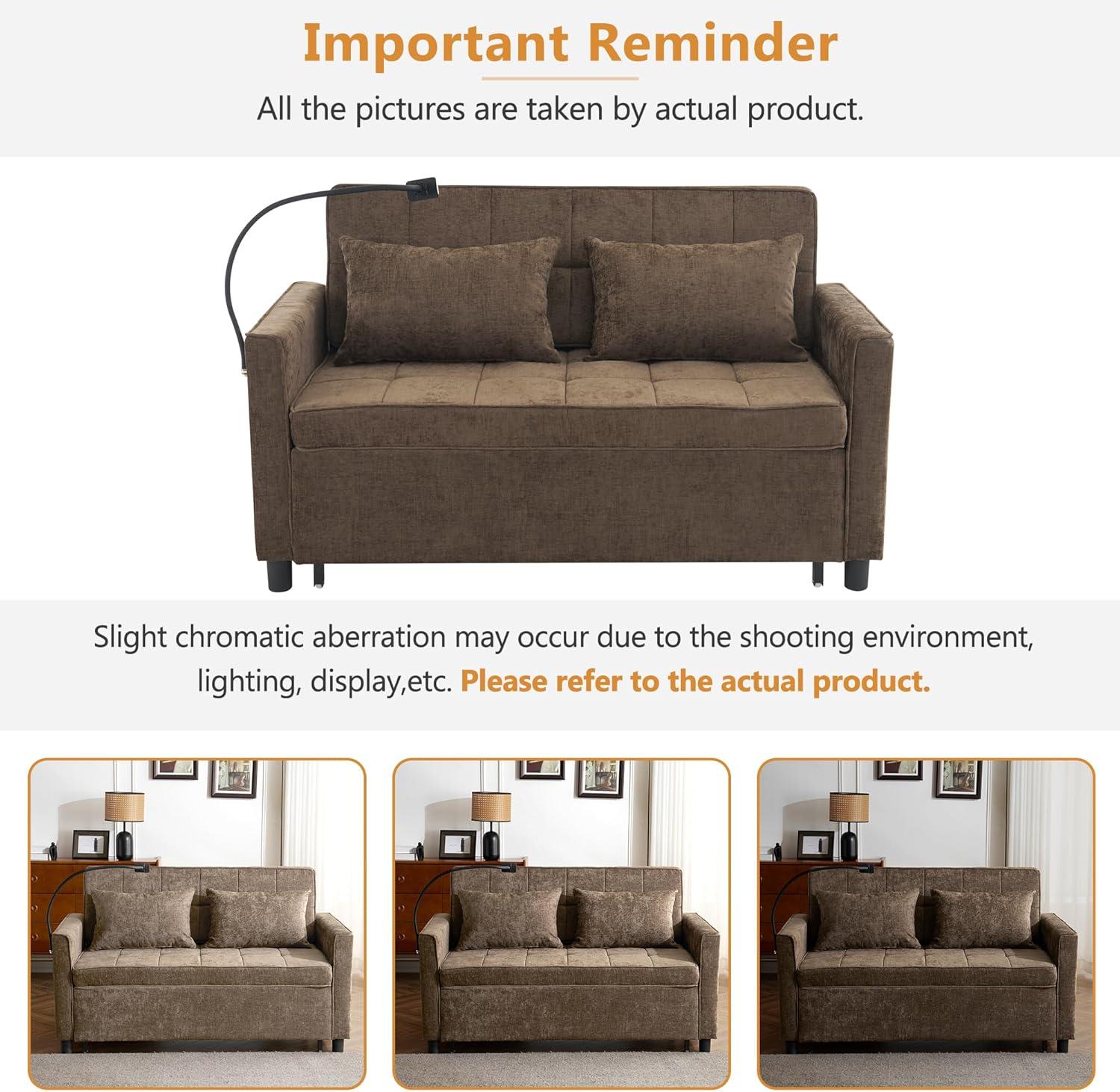 After exploring the many features of the Loveseat Sofa pull-Out Sofa Bed—with its multi-level adjustable chenille fabric backrest, convenient side pockets, dual USB ports, and built-in phone stand—we can confidently say it brings a perfect blend of functionality and style to any living space. Its flexible design effortlessly transforms from a cozy loveseat into a agreeable sleeper, making it ideal for small apartments or rooms where versatility is key.With a sturdy frame and plush cushioning, it promises both durability and comfort, while the thoughtful additions like USB charging and storage pockets help keep your essentials within easy reach.