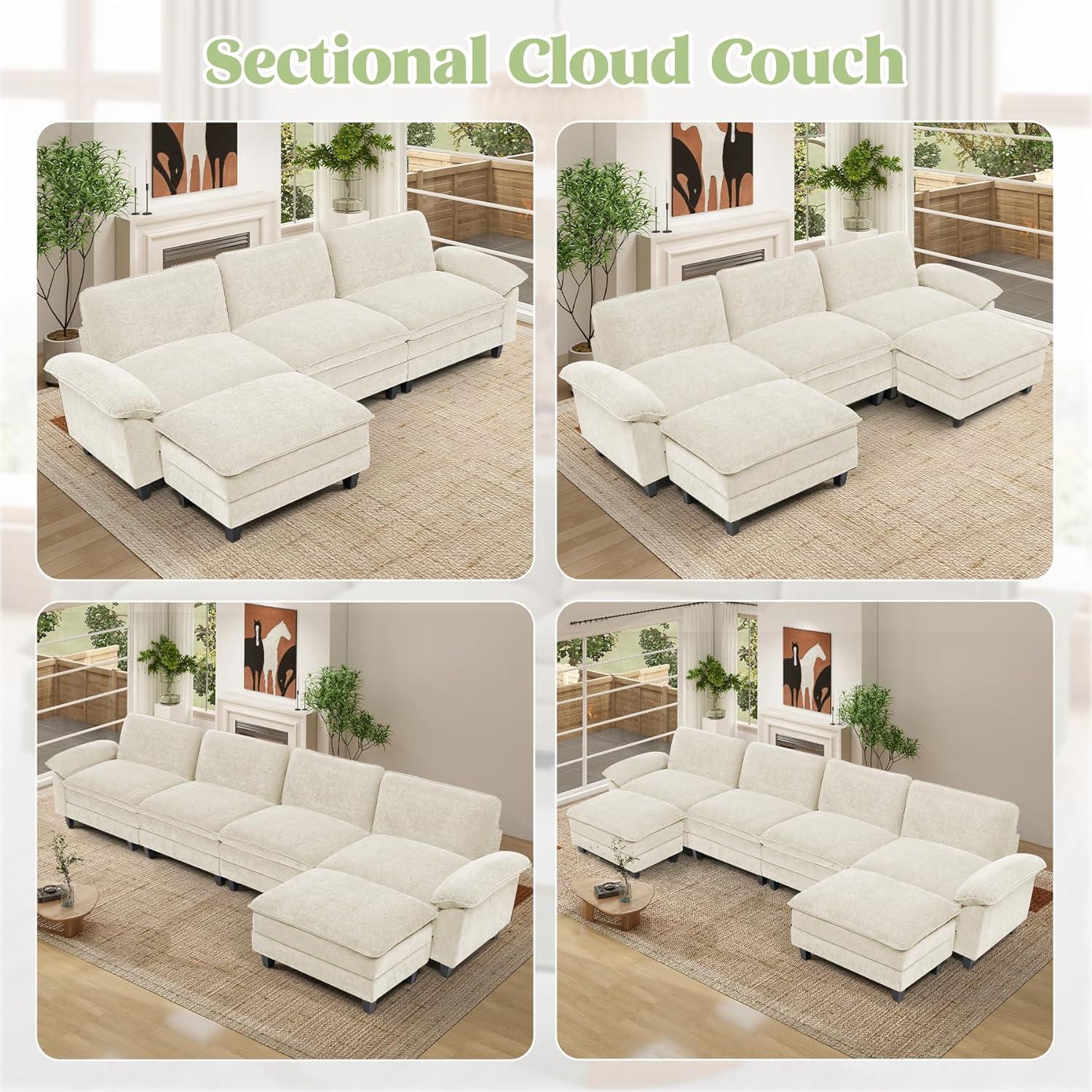 After months of regular use, you notice the ”154″ Modular Sectional Sofa, Comfy cloud Couch settling into corners and routines as the room is used. Its deep seats soften where people habitually sit, arm edges pick up the faint impressions of hands, and the chenille shows small, readable signs of surface wear in daily routines. It quietly shapes how space is used — the paths you take across the room, the places you pause with a book, the spots that collect blankets — and becomes part of everyday presence. Over time,in regular household rhythms,it rests.