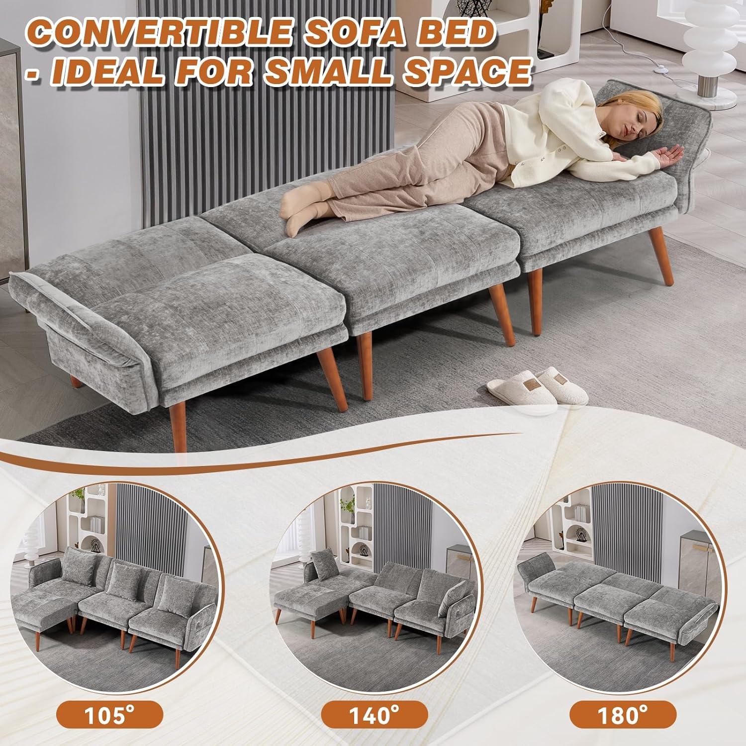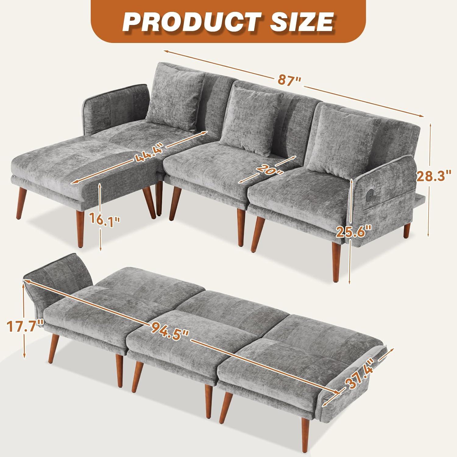 the 87” Sectional Couches Convertible Sofa Bed truly shines as a versatile and stylish solution for anyone looking to maximize both comfort and space. Whether you’re outfitting a cozy living room, a compact home office, or a small apartment, this modular 2-in-1 sofa bed adapts effortlessly to your needs. Its modern chenille fabric combined with thoughtful features like adjustable armrests, reclining backrest, and durable wooden construction ensures that comfort doesn’t come at the expense of longevity.With easy customization and space-saving design, it’s a smart investment for creating a welcoming and functional environment.