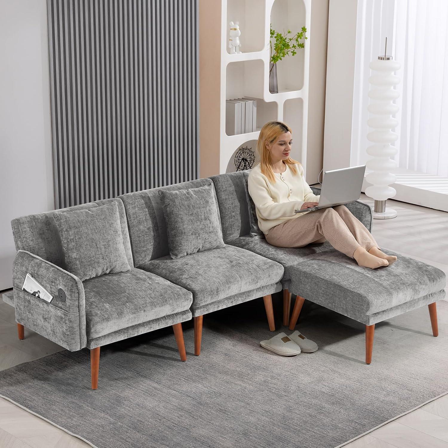 After incorporating this sectional into our daily routines, its build quality has truly stood out. The robust wooden frame feels solid and reliable, supporting our varied uses without any signs of weakening or squeaking. The 28D sponge padding offers a perfect balance of softness and support, making extended seating comfortable while maintaining its shape well over time.We also appreciate the modern chenille fabric; it’s not only visually appealing but holds up impressively against regular wear, spills, and pet interaction, showing minimal pilling or fading even after weeks of use.