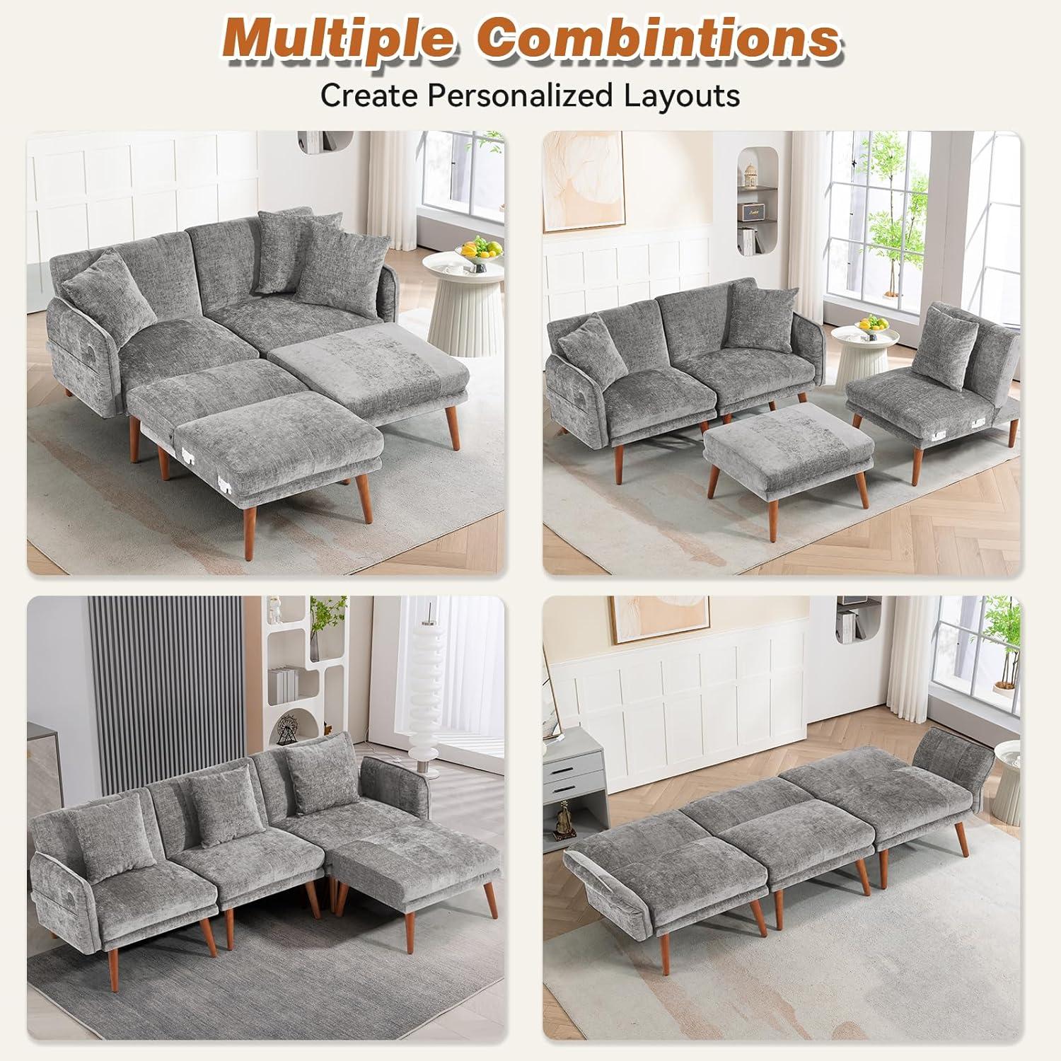This configuration truly tailors itself to our lifestyle needs, striking a perfect balance between form and function. The combination of modern chenille fabric and a robust wooden frame ensures the setup remains elegant and sturdy in any setting.