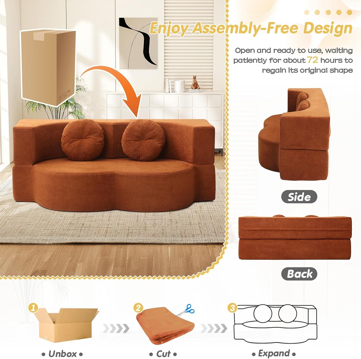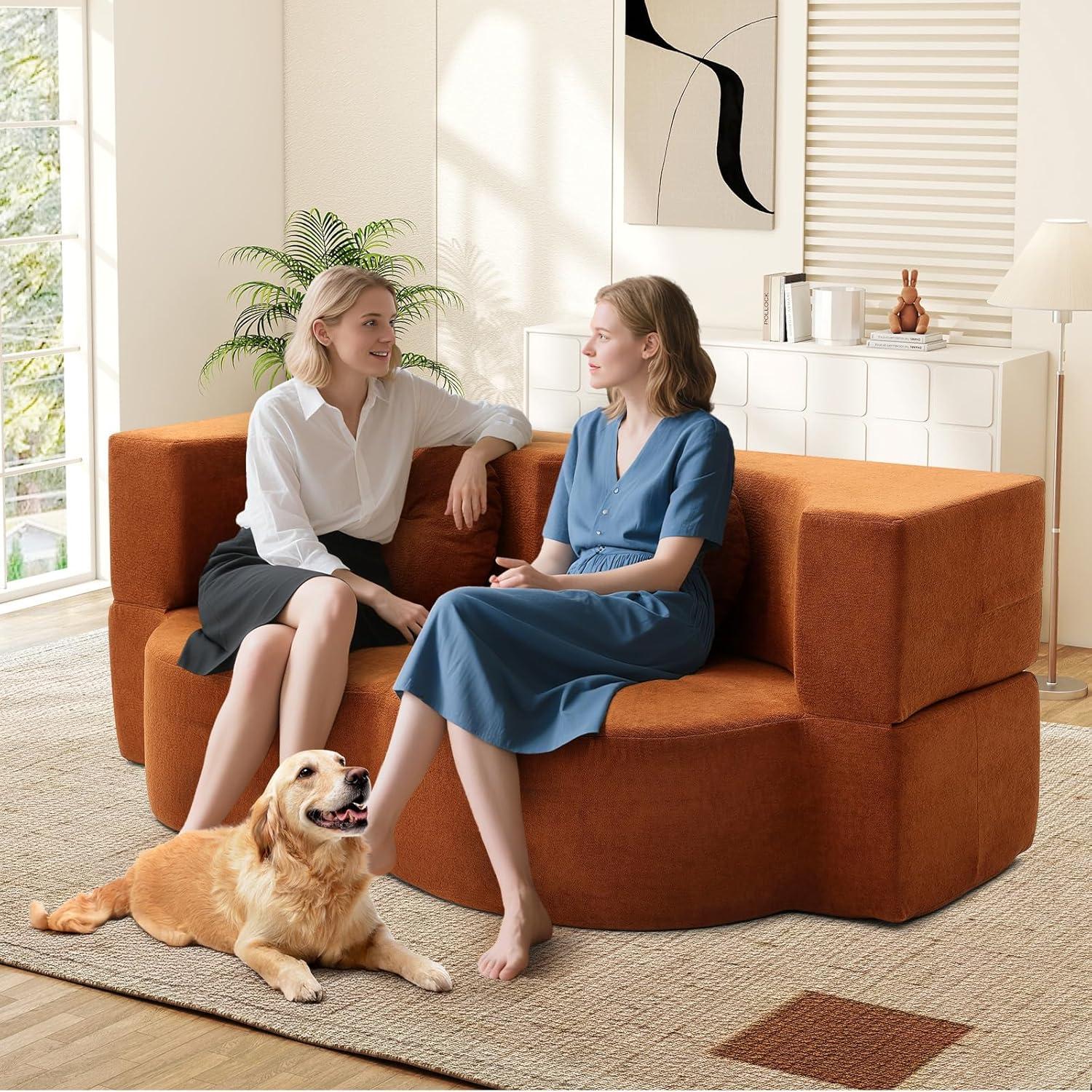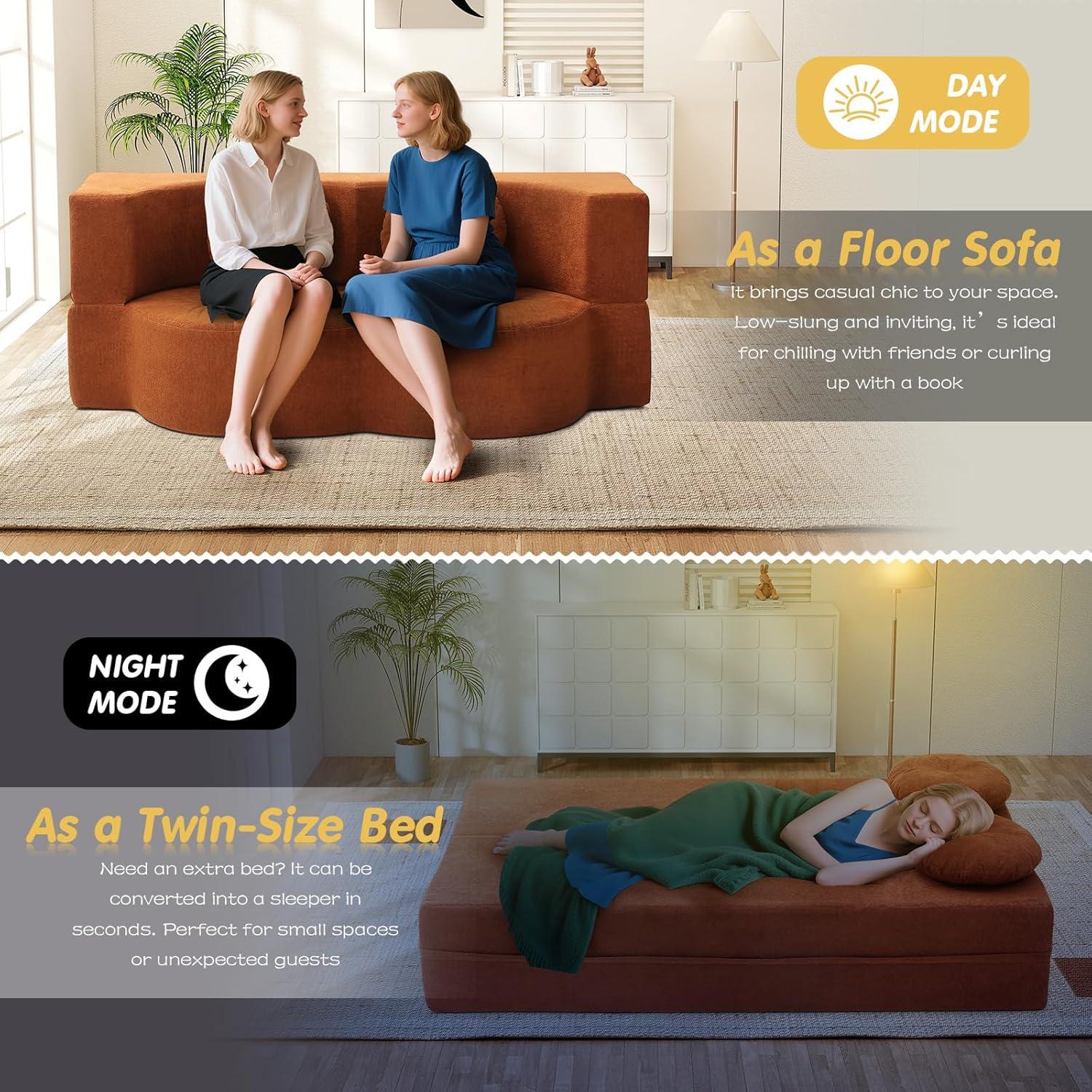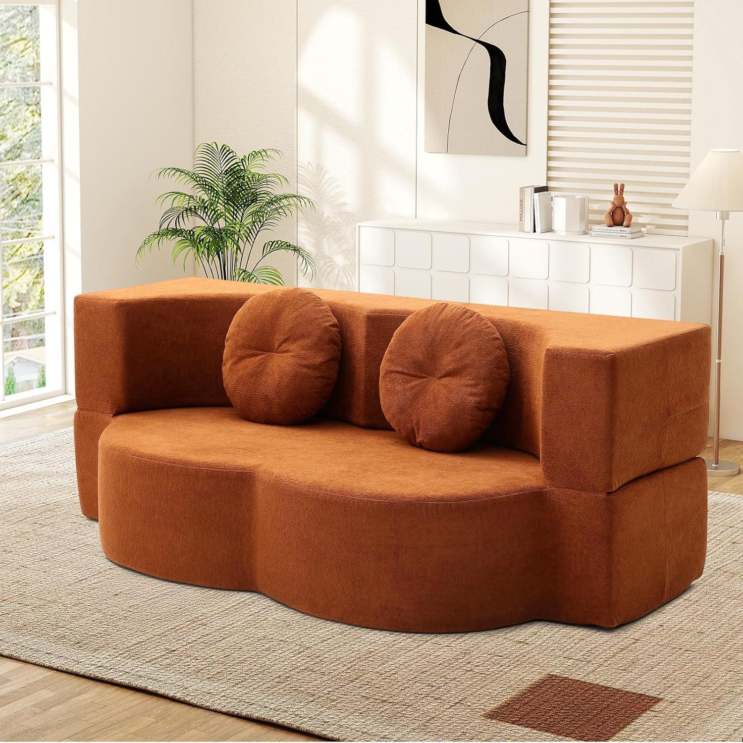Thank you for joining us as we explored the features and benefits of the Folding Futon Sofa Bed in vibrant orange. It’s clear that this versatile piece strikes a harmonious balance between style, comfort, and practicality—making it an excellent choice for anyone looking to maximize their living space without compromising on design. Whether you need a cozy spot to relax during the day or a convenient bed for guests at night, this chenille cloud memory foam loveseat seamlessly adapts to your needs with ease and elegance. Its durable construction and thoughtful details, like the playful pumpkin-shaped pillows and anti-slip base, give us confidence that it will stand up to everyday life while adding a splash of warmth to any room.
