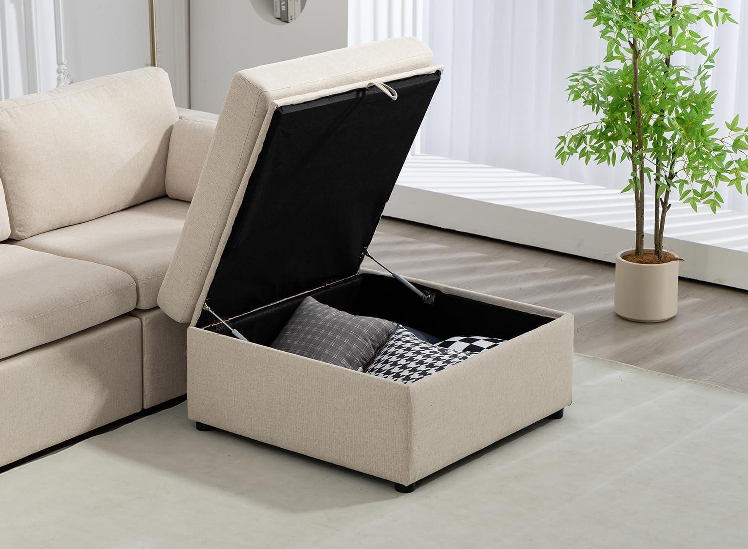 Adding this versatile piece to our modular setup truly elevated our living space. Its ability to fit seamlessly alongside our sectional sofa gave us the adaptability to customize the layout according to our needs, whether for lounging, working, or entertaining guests. The spacious built-in storage inside helps us keep clutter at bay, storing everything from blankets to books without compromising style or comfort. Plus, the soft, breathable fabric combined with high-density sponges supports us comfortably through long movie nights or casual gatherings.