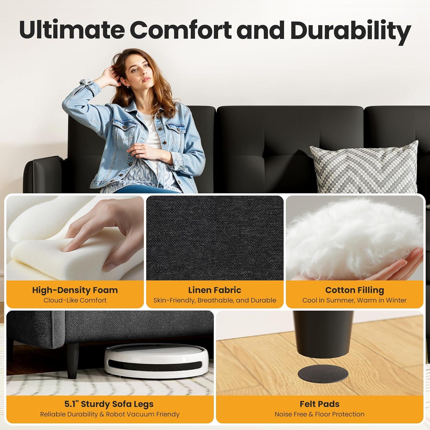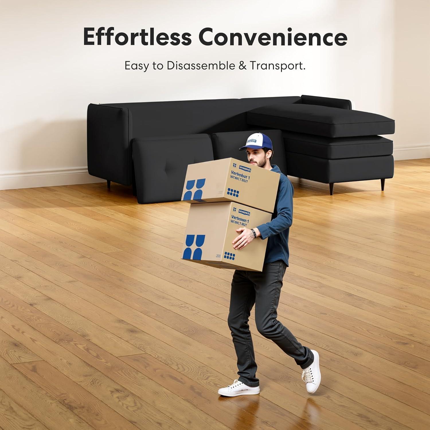 our experience with the Jet Black Convertible Sectional has shown us just how much thought can go into designing furniture that truly fits small spaces without sacrificing comfort or style. From its flexible 4-in-1 configurations to the surprisingly roomy reversible storage chaise, this sofa adapts seamlessly to our apartment, dorm, or cozy living room setup. Its robot-ready legs and easy-clean linen fabric add practical touches that make daily living simpler, while the fast one-box delivery and straightforward assembly mean less hassle and more time enjoying our space.