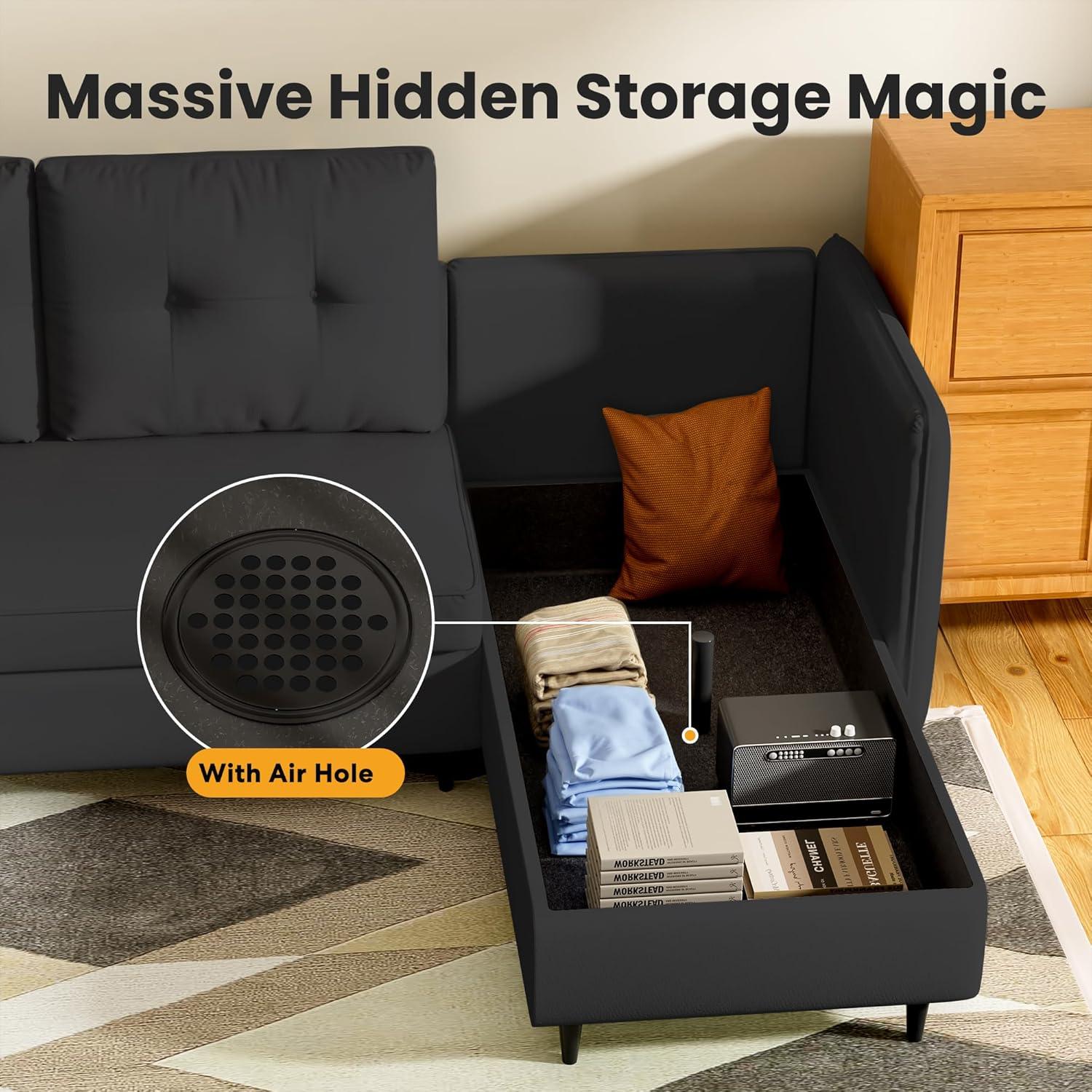 This compact sectional is a game-changer for anyone navigating the challenges of limited space. Its dimensions—just under 80 inches wide and 50 inches deep—make it an ideal centerpiece for apartments, dorm rooms, or cozy living rooms.What truly sets it apart is the reversible chaise with built-in storage, a clever feature that tucks away blankets, books, or everyday clutter without adding bulk. Its thoughtful design lets us easily switch between left or right chaise configurations, adapting seamlessly to different room layouts.The elevated legs, measuring over five inches high, provide enough clearance for robot vacuums to zip underneath, ensuring we keep the area effortlessly tidy.This sofa’s versatility ensures that whether you want a full four-seater, a cozy nap nook, or a sleeper couch, it molds to our needs without overwhelming the space.