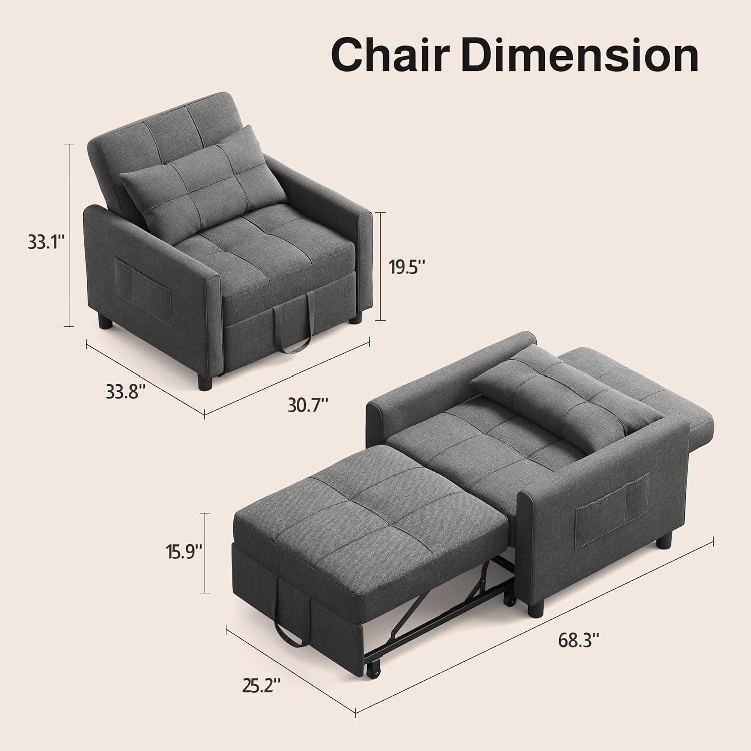 We appreciate a piece of furniture that adapts effortlessly to our living surroundings, especially when space is at ⁢a premium. This convertible sofa bed impresses​ with its ‌3-in-1 multifunctionality, seamlessly shifting from a supportive chair to a reclining seat, and finally into a full-size bed in just seconds. Its ‌modern dark gray linen fabric complements ⁣various interior styles while offering a ‍cozy texture that‍ invites relaxation. ⁣Perfectly suited for apartments, dorm rooms, or home offices, it replaces the need for multiple bulky pieces, saving ⁣valuable floor space without sacrificing comfort or style.