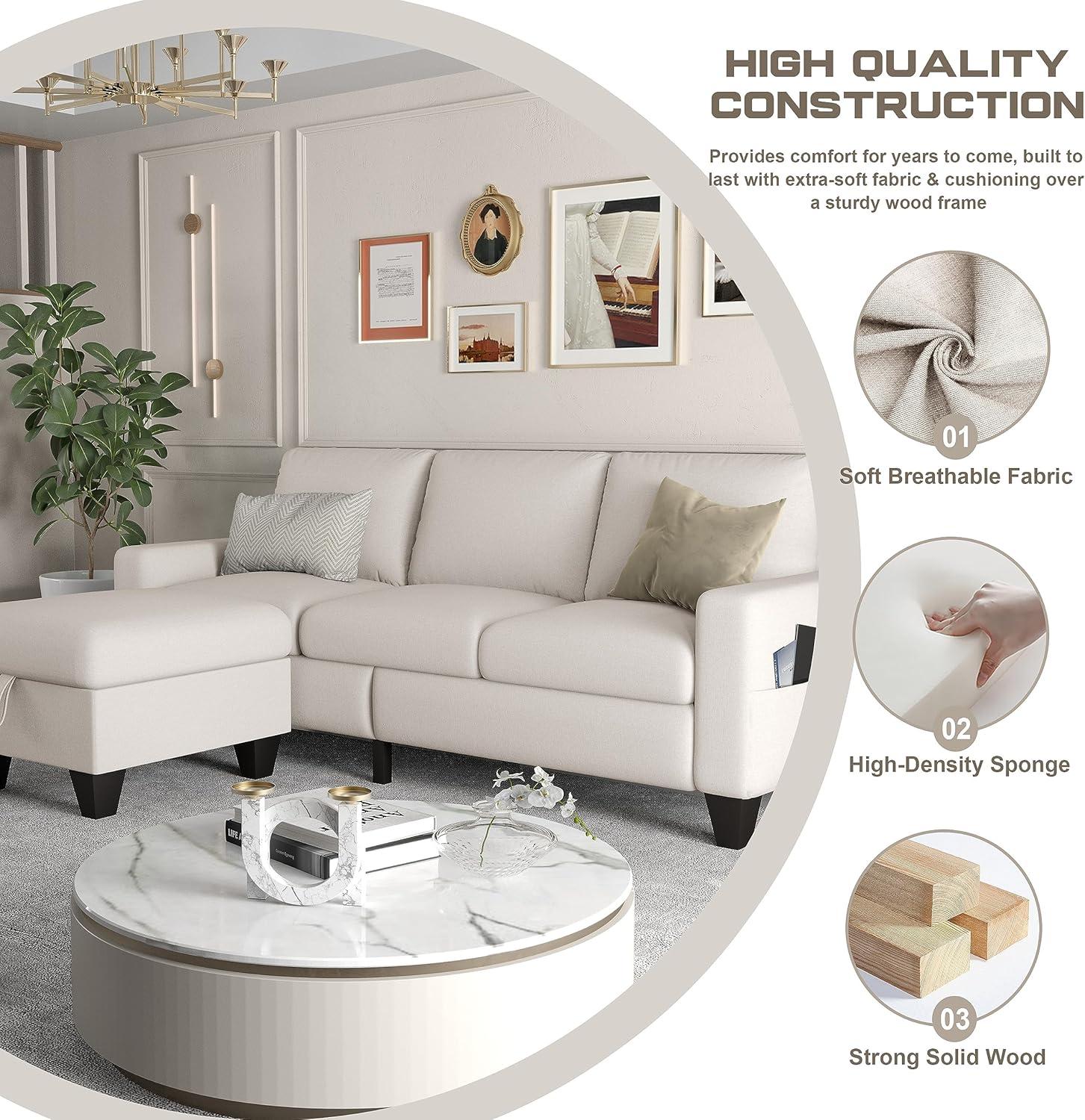 From ‍the moment we unpacked this elegant 3-seat sectional, it was clear that design and‍ functionality​ were thoughtfully balanced. Crafted ‌with breathable, durable ‍linen‌ upholstery over a sturdy hardwood ⁣frame, the couch feels both comfortable and ⁤long-lasting. Its⁢ modular L-shaped design invites customization, allowing us to rearrange the components or even transform a⁢ section‍ into ‌a recliner, perfectly suiting our small⁢ living space. The beige tone blends effortlessly with various decors, promising​ versatility whether placed in an ⁤apartment, office, or bedroom.
