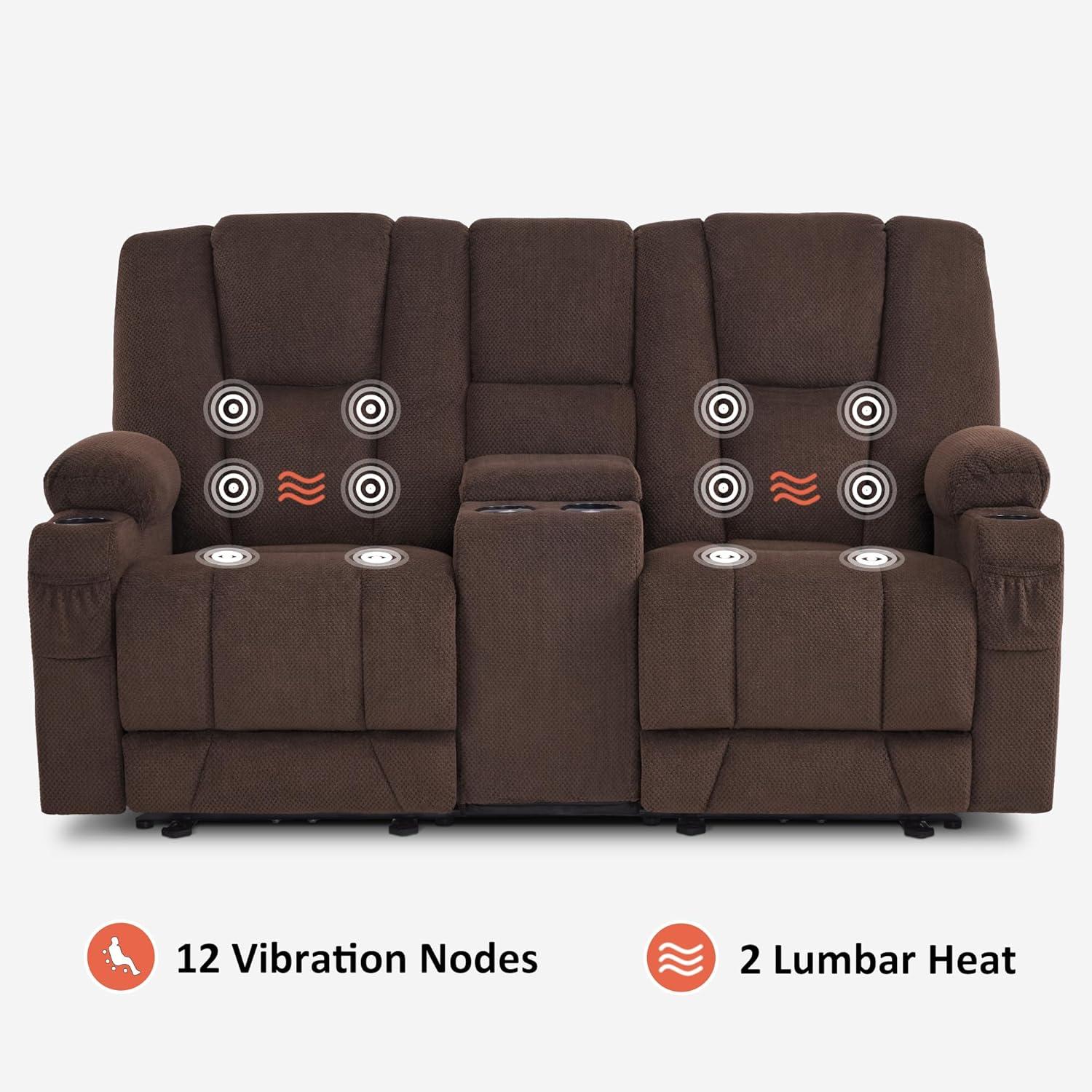 Beyond the comfort-first structure, the integrated lumbar heat and six vibrating massage nodes elevate relaxation further. We found these features customizable with multiple massage modes, intensity settings, and timers, targeting key stress zones from legs to shoulders. The heat function complements the massage by warming your back, easing tension without overheating. While some mention the slight noise of the massage motors, it becomes a minor trade-off for the therapeutic benefits received. The loveseat also smartly incorporates conveniences like USB charging ports, cup holders, and a flip-down console to keep essentials close, rounding out an all-encompassing, cozy escape.