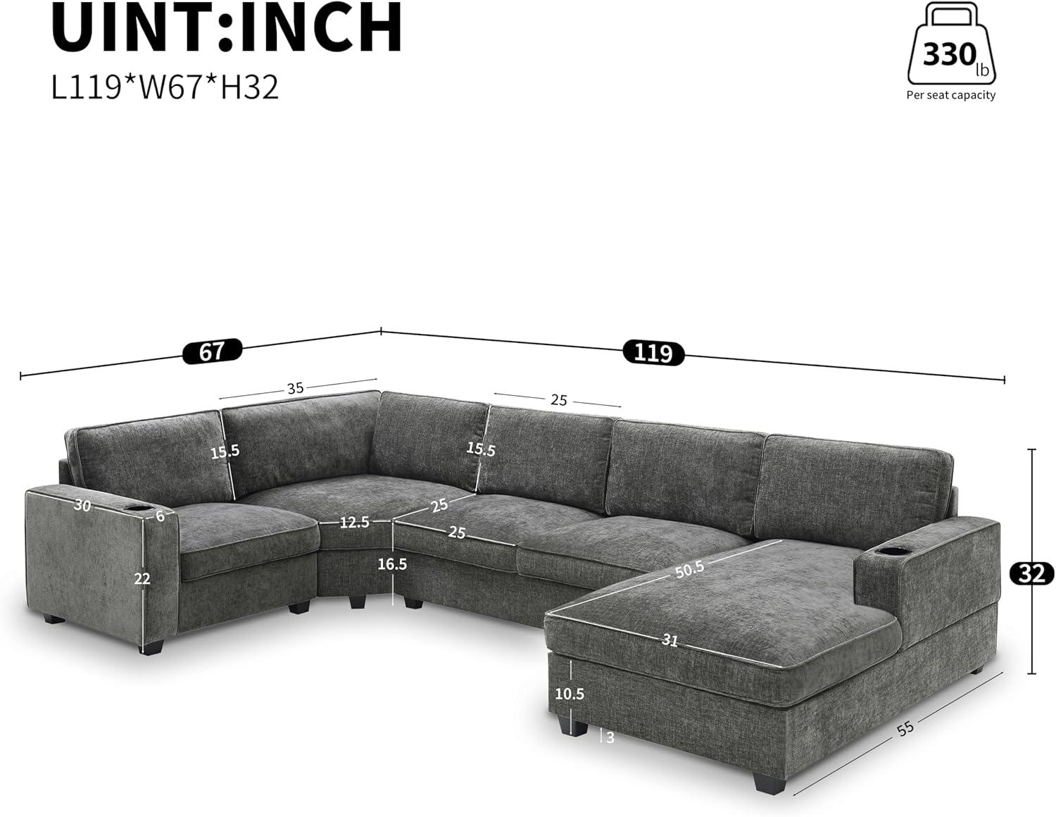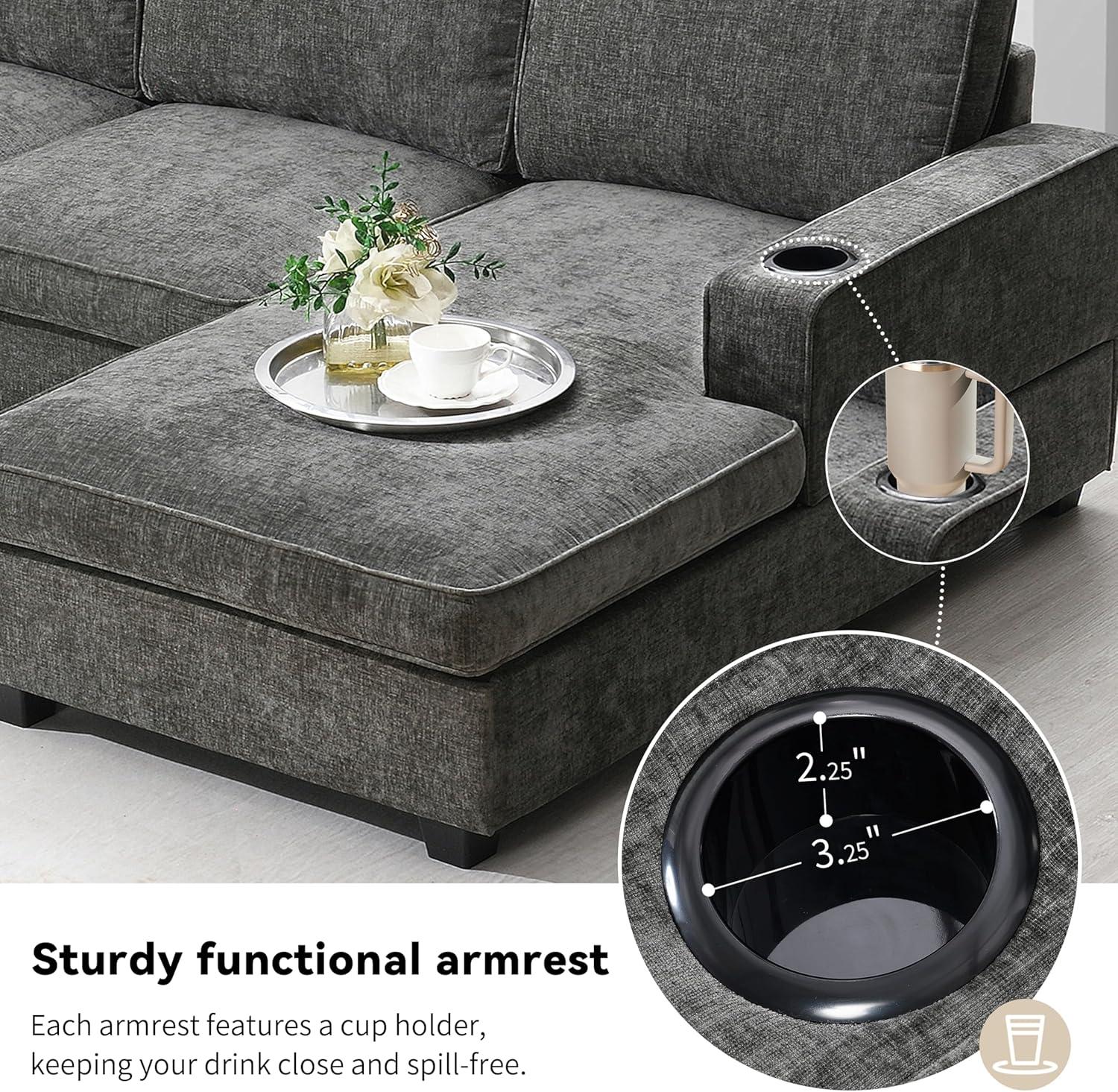 Late afternoon light catches the chenille and the gray reads warmer than it did online, the upholstery soft but ⁤carrying a definite⁢ visual weight across ​the room. You can ⁤tell at a glance it’s the Merax 119 U-shaped sectional — broad,low,and unmistakably six-seat in scale. Slide your ‍hand over a cushion and the fabric yields with a short, plush ⁣give;‍ when you flop down the frame feels solid rather than ‍springy. A generous⁣ chaise extends past the coffee table and small cup holders peek from the armrests, tidy details tucked into the folds of ⁤fabric. ⁢From where ‍you stand the piece quietly dominates the space, its scale and texture⁢ setting the room’s mood before you even sit.