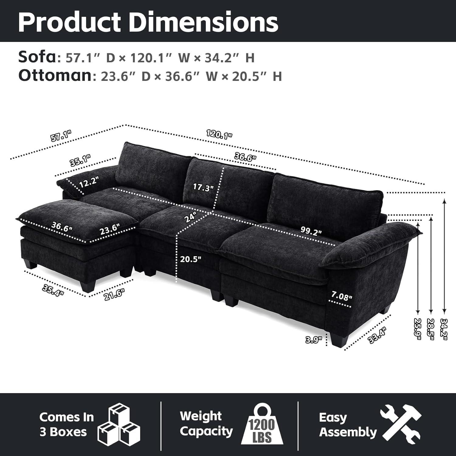 The movable ottoman adds another layer of functionality and style, perfectly complementing the chenille cover. It serves multiple purposes—whether as a footrest after a long day, an extra seat when guests arrive, or even a coffee table base when paired with a tray.Crafted from premium, durable materials, the frame and high-density foam cushions promise lasting support and daily resilience. Assembly is surprisingly straightforward, making setup a quick and enjoyable project. Here’s a quick look at its key comfort and style features: