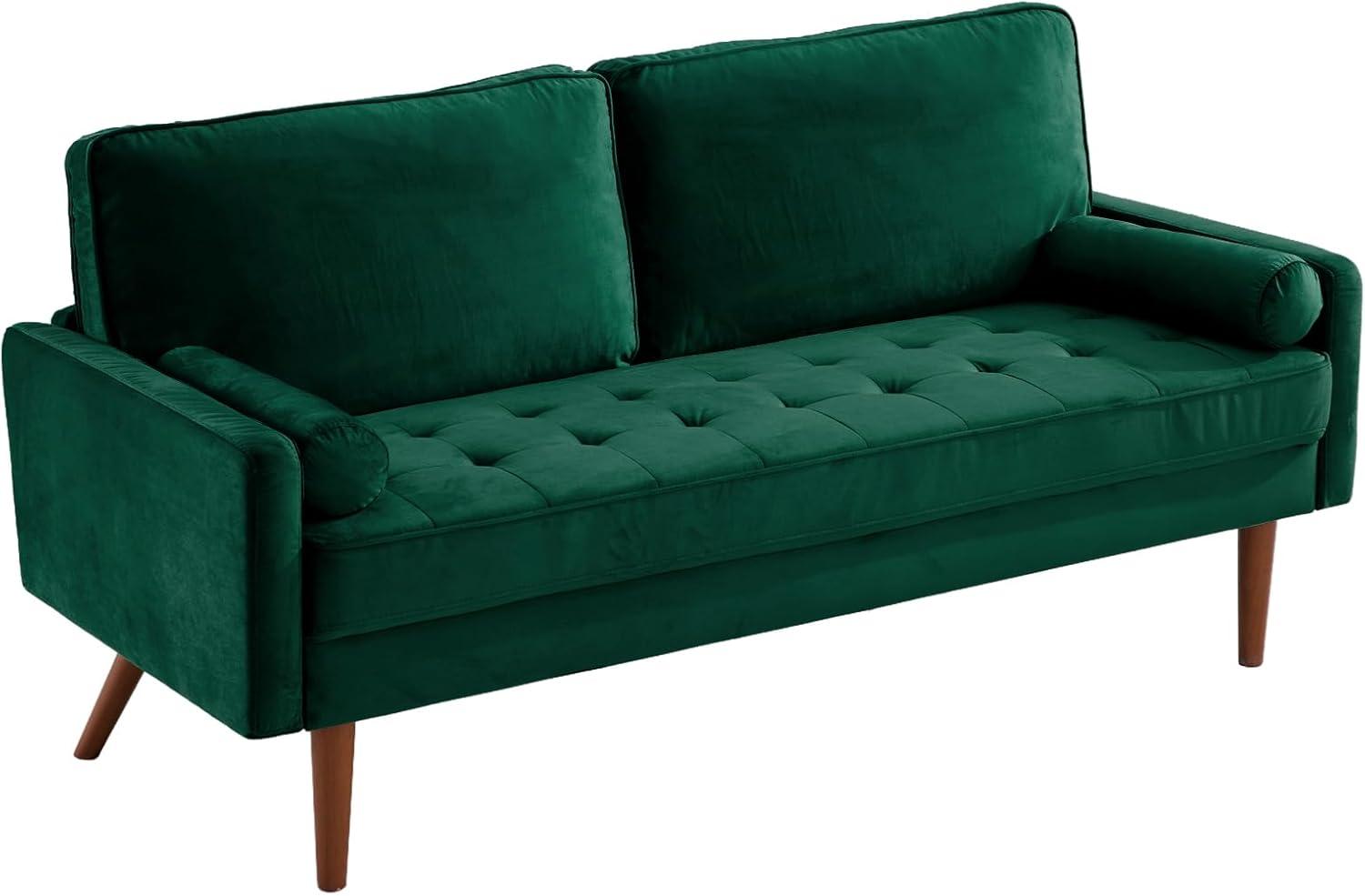 Mid-Century Green Velvet Loveseat: Style Meets Spacious Comfort