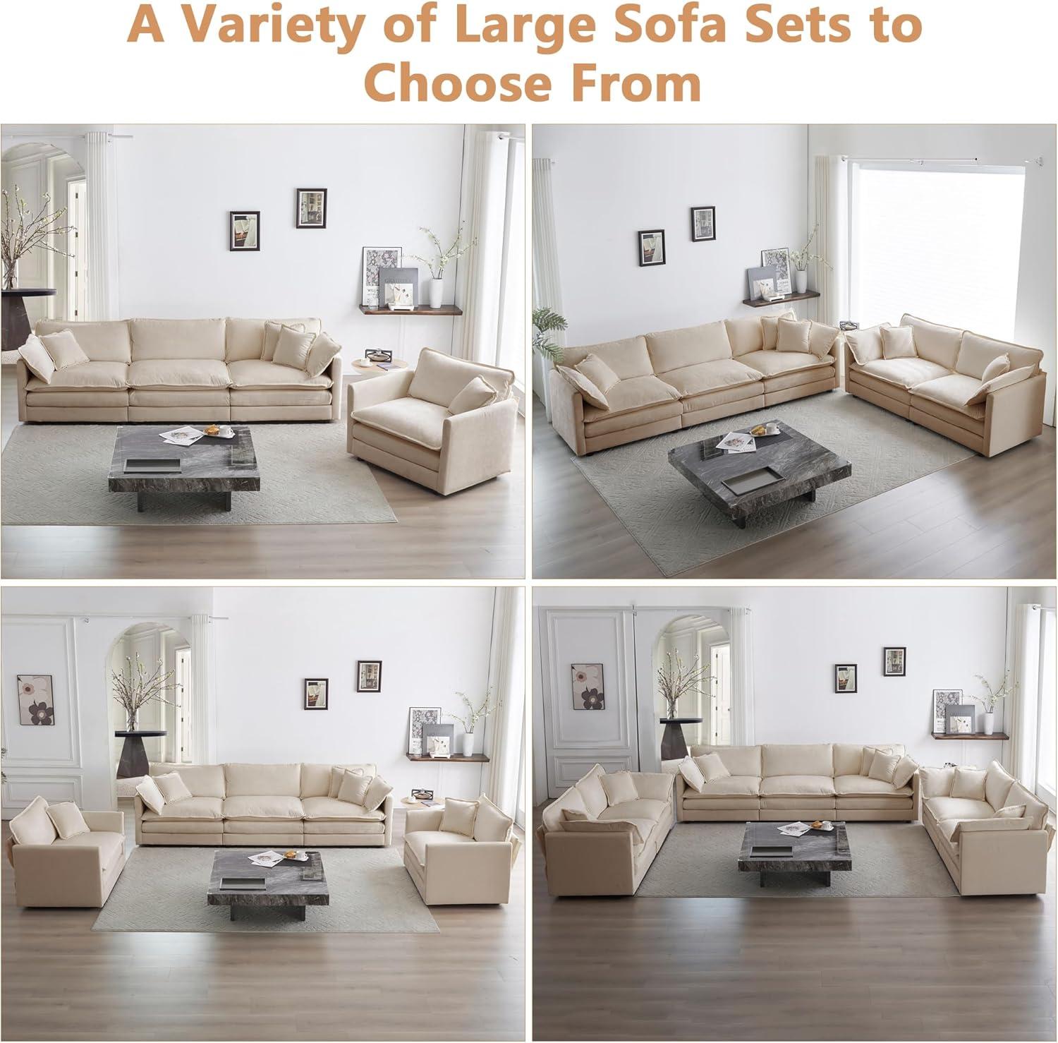 Photos in this review show a handful of common arrangements and the small visual shifts that come with them. When you look at an image of the full L‑shape tucked into a corner,the backrests read as one continuous plane and the ottoman often disappears into the negative space; in more open,centered shots the same configuration looks airier and the chenille texture catches highlights differently.After unpacking and a bit of use, cushions settle and seams relax, so in close‑up photos you may notice faint creasing along seat edges or a slight nap direction on the fabric that wasn’t obvious in the first room shot. Moving modules apart tends to reveal the base joinery and any tiny gaps where the units meet; those details show up more in overhead or angled photos than in straight‑on living‑room views.