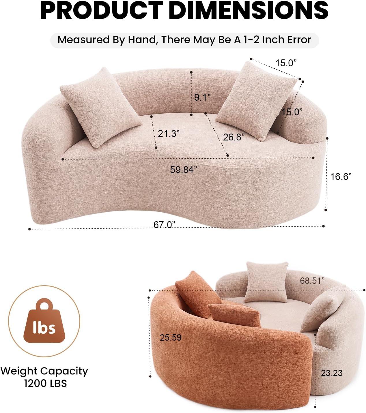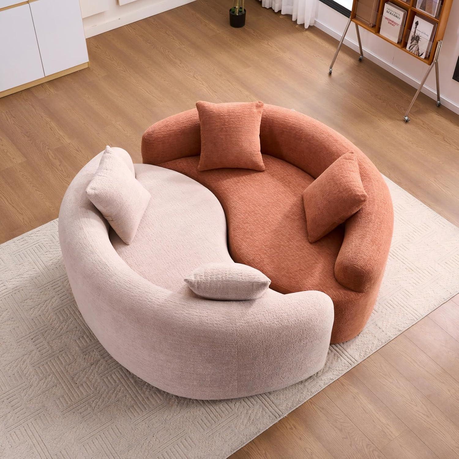 This versatile loveseat captures a modern aesthetic with its unique boneless curved design, elegantly upholstered in soft chenille fabric that offers a complex blend of beige and coral hues. The tactile chenille surface features anti-pilling properties and a delicate short fluff texture,ensuring the loveseat remains inviting and easy to maintain over time. Its deep seat and plush cushioning, crafted from high-density foam, provide a remarkable balance of softness and support, making it equally suitable for lounging, working, or casual gatherings in diverse environments like coffee shops, game rooms, or offices.