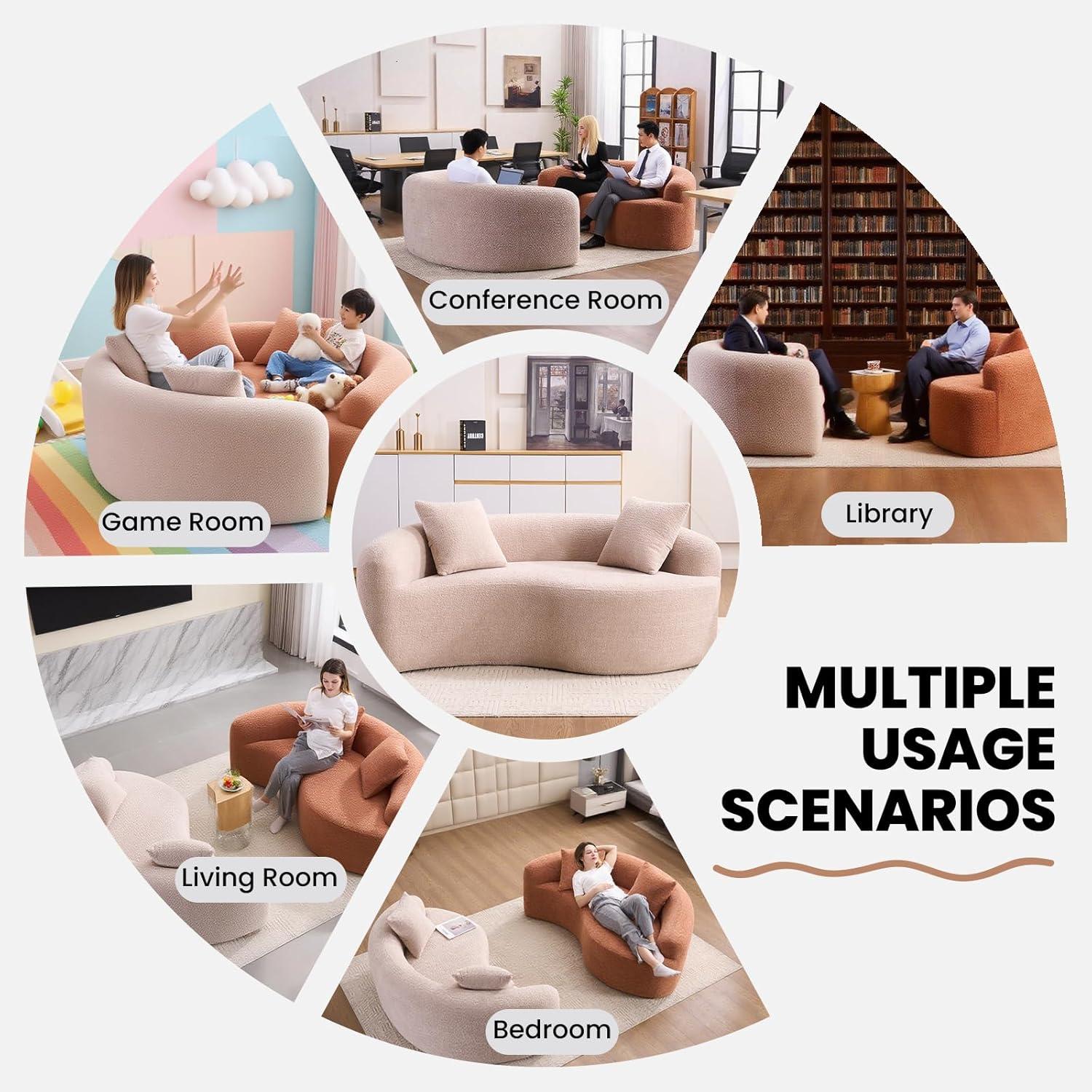 The boneless curved design truly elevates both the style and functionality of this loveseat. Without conventional legs or sharp edges, it offers a softly contoured silhouette that invites relaxation and easy movement around the piece. We appreciated how this structure makes it simple to reposition the loveseat without the fear of scratching floors, while giving the entire combination a smooth, modern aesthetic. The modularity also allows for creative arrangements, whether joined together as a round chaise lounge or used separately for individual seating—we found this flexibility perfect for small spaces like coffee shops or game rooms.