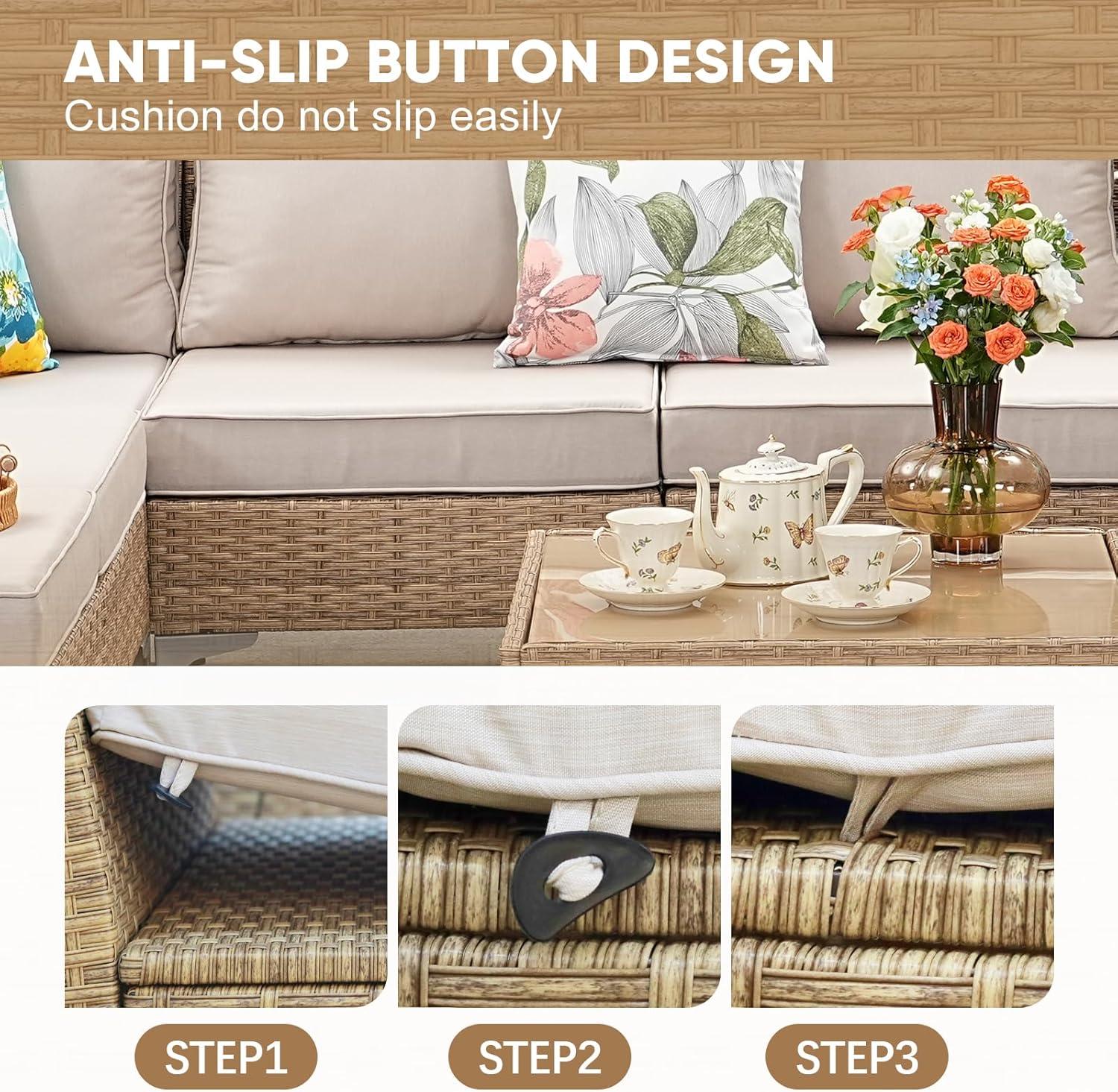 | Waterproof, stain-proof, and washable cushion covers make maintenance easy | The anti-slip buttons, while helpful, may shift slightly if cushions are frequently moved |