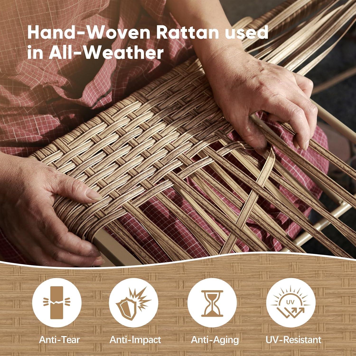 - Weather-resistant: Durable PE rattan construction