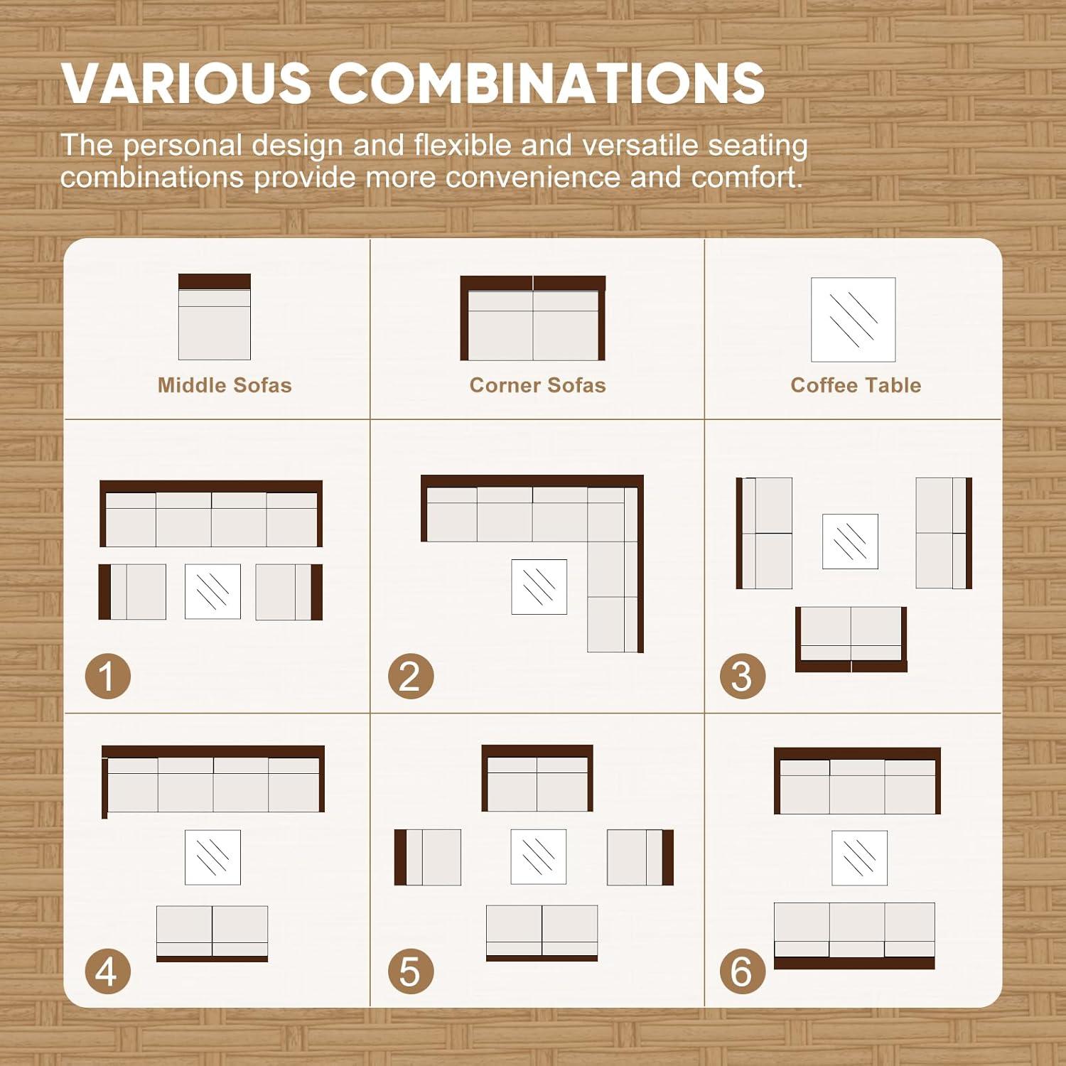 | Versatile layout with corner and middle chairs plus coffee table adapts to various spaces | Missing or damaged parts can be an issue but customer service support is responsive |