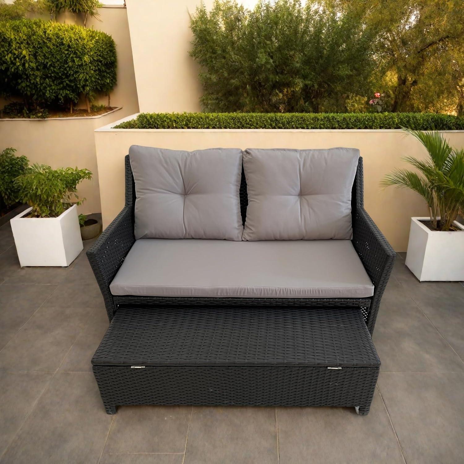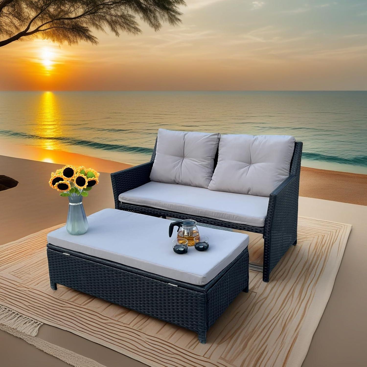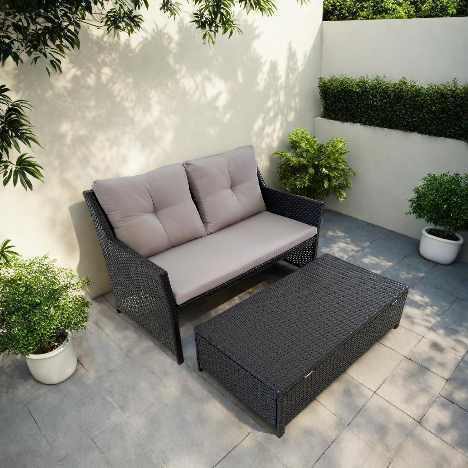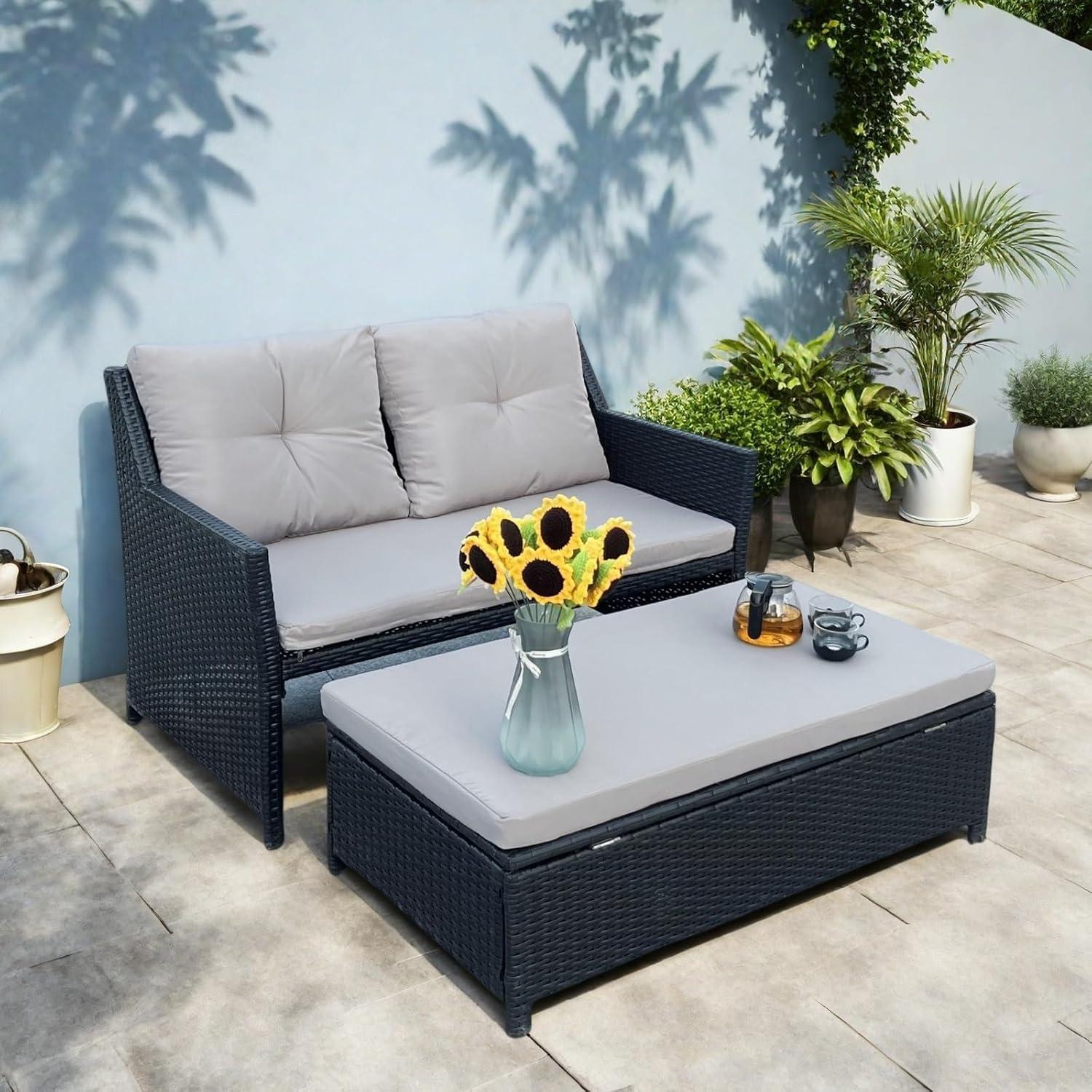 We recently had the chance to spend some quality time wiht the 2 Piece Patio Loveseat set—an outdoor sofa and coffee table combo crafted from black rattan with cozy gray cushions. Designed for intimate spaces like balconies, porches, or poolside retreats, this set aims to blend comfort, style, and practicality. With its hand-woven, weather-resistant materials and built-in storage, it promised more than just a place to sit. After assembling and using it over the past weeks, we’re here to share how it holds up in real life—whether it truly delivers on comfort, durability, and convenience for outdoor lounging.