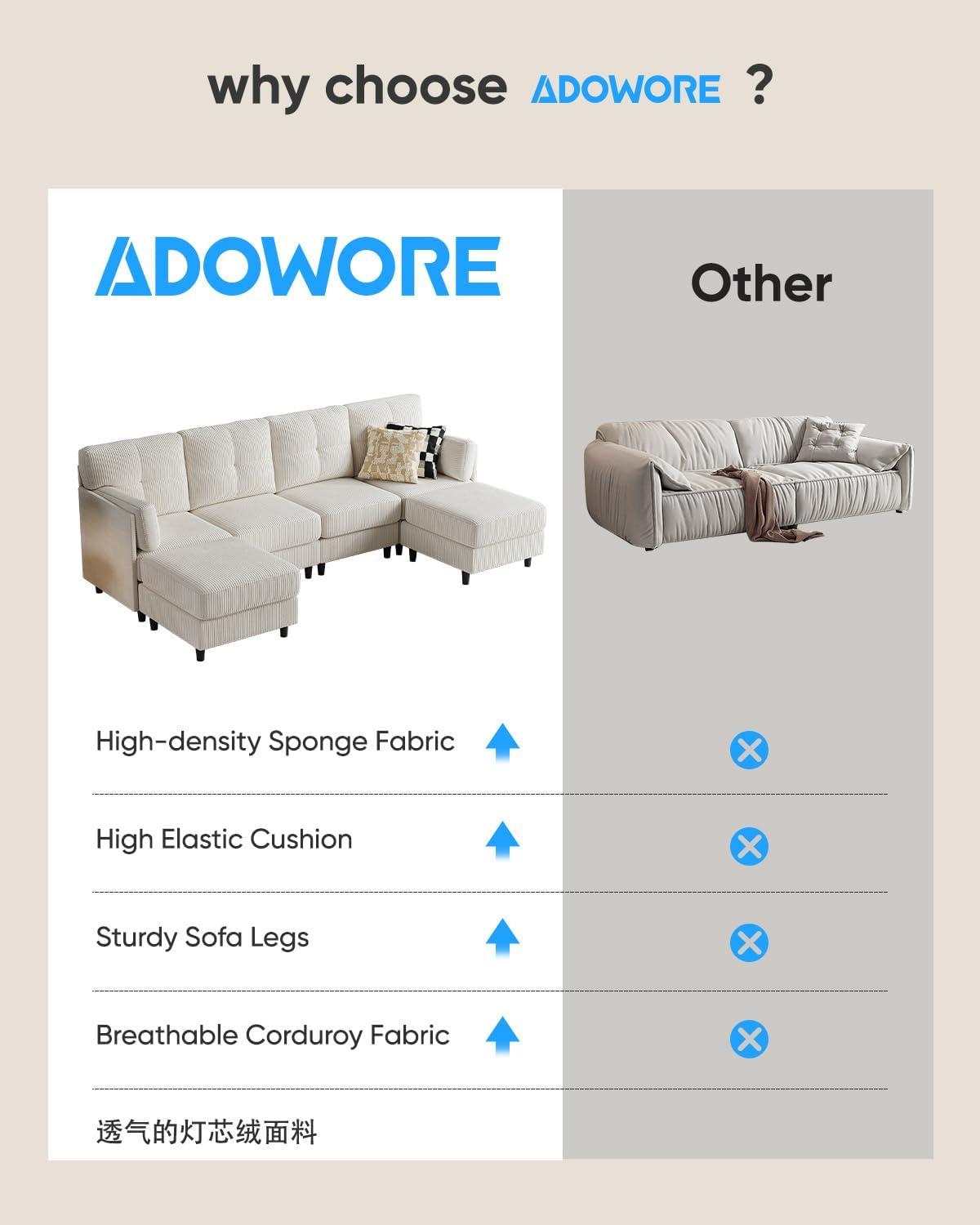 Stepping ⁣into⁤ our living room felt like entering a cozy retreat the moment we unboxed the ADOWORE ⁣112-inch ‌Sectional Sofa. With its generous U-shaped design and soft beige corduroy fabric, this 4-seat modular piece ​promptly invited ‍us to ​sink into its high-density memory foam cushions. Over the past few weeks, we’ve put this sofa through its paces—testing its comfort, ⁣versatility, and durability—and in this review, we’ll share how it blends creative ⁤modularity with everyday practicality to elevate any home space.
