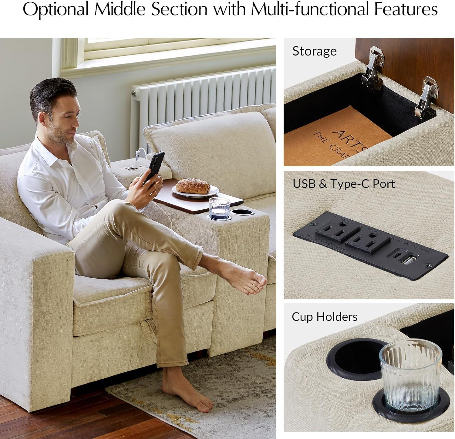 We were immediately impressed by how inviting and cozy the seating feels,thanks to the plush chenille upholstery that’s both soft to the touch and durable. The oversized L-shaped design offers ample space for family gatherings or casual lounging, comfortably seating up to eight people without feeling cramped.What really stands out is the modular layout, letting us flexibly arrange sections to perfectly fit our living room. The thoughtfully integrated console with USB and Type-C ports also adds a modern convenience, making it effortless to stay connected while relaxing.