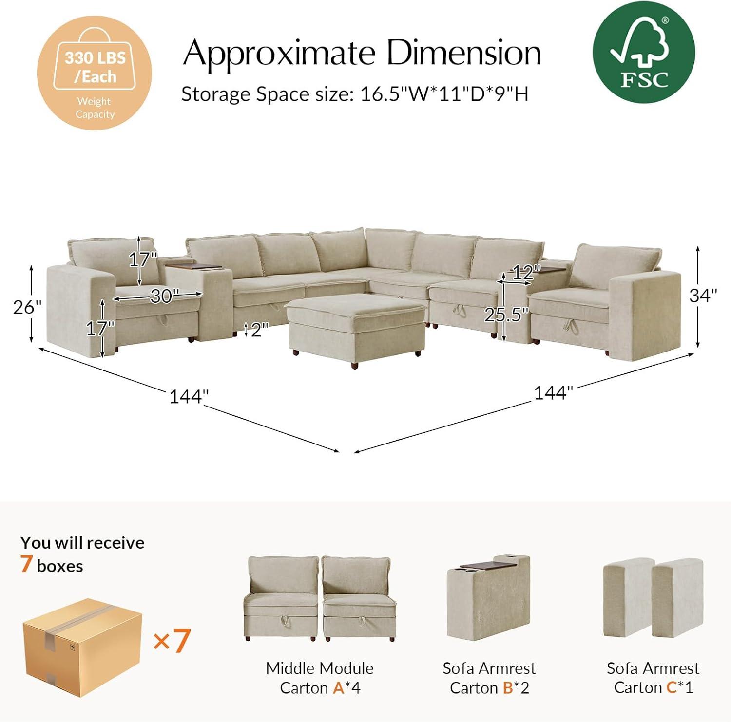 Unboxing and setting up this sectional was a surprisingly smooth process despite the large size and multiple pieces. The sofa arrived in 7 separate boxes, each clearly labeled to ease identification. The package included all necessary hardware, and the instructions were straightforward, allowing us to assemble the entire sectional without any specialized tools or professional help. While the size calls for some patience, especially when maneuvering parts into place, the modular design makes the process manageable. customer support was also responsive and helpful when we had minor questions, adding confidence during installation.