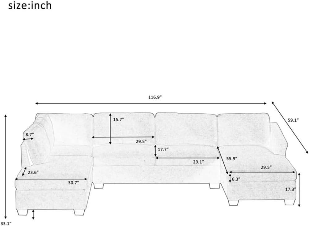 We appreciate how this sectional sofa effortlessly blends style and comfort through its spacious U-shaped design and extra-wide chaise lounges, perfect for lounging or entertaining guests. The breathable, soft fabric invites relaxation, while the ergonomic layout ensures it fits naturally in various settings — from apartments to living rooms. Its eye-catching silhouette adds a harmonious touch to any space, making it a versatile choice for modern interiors.