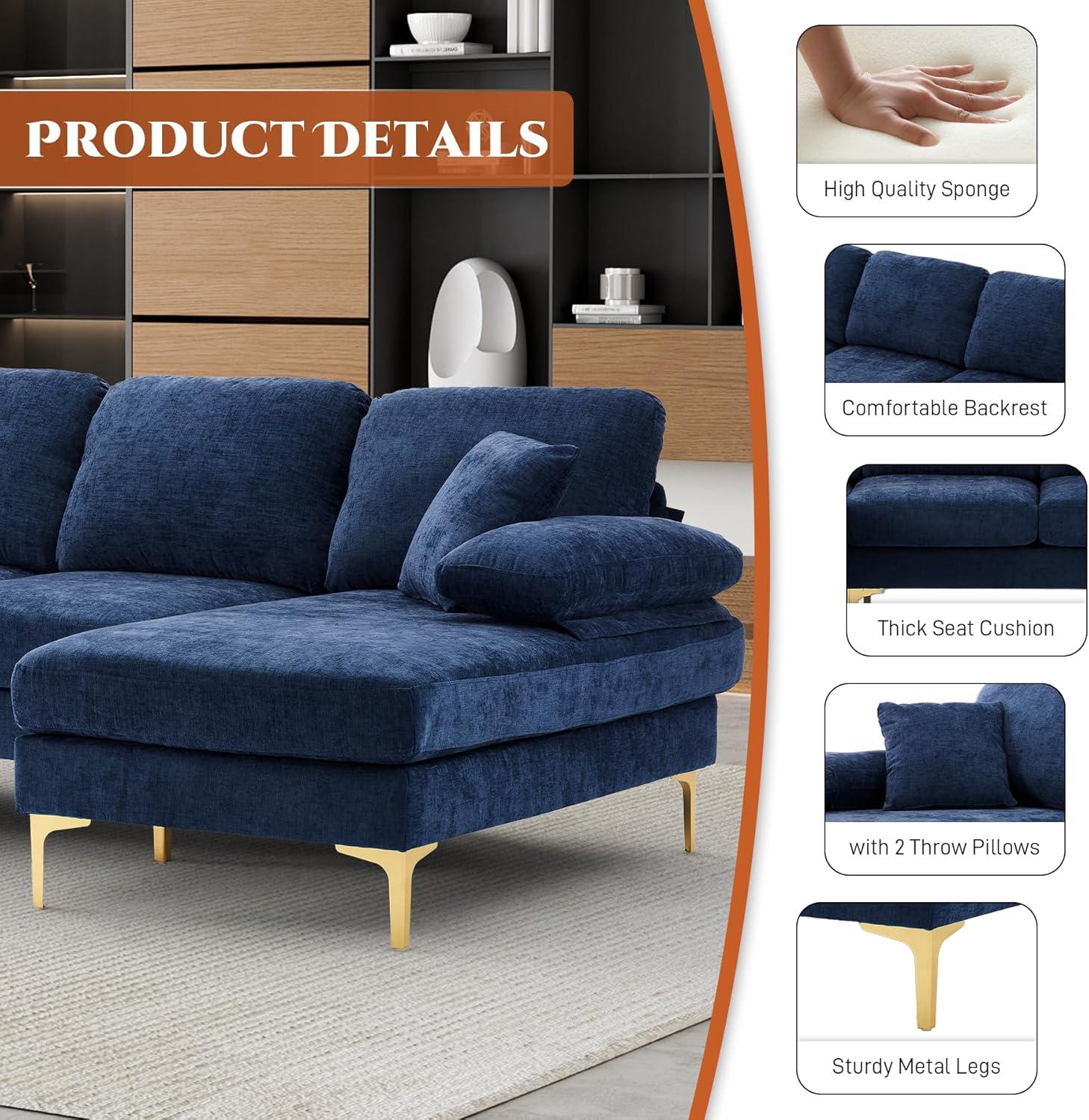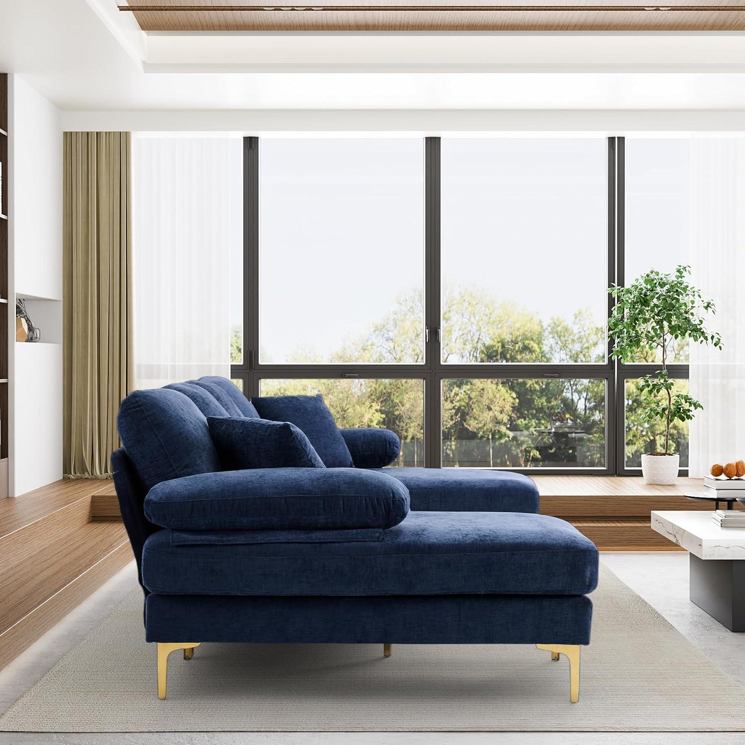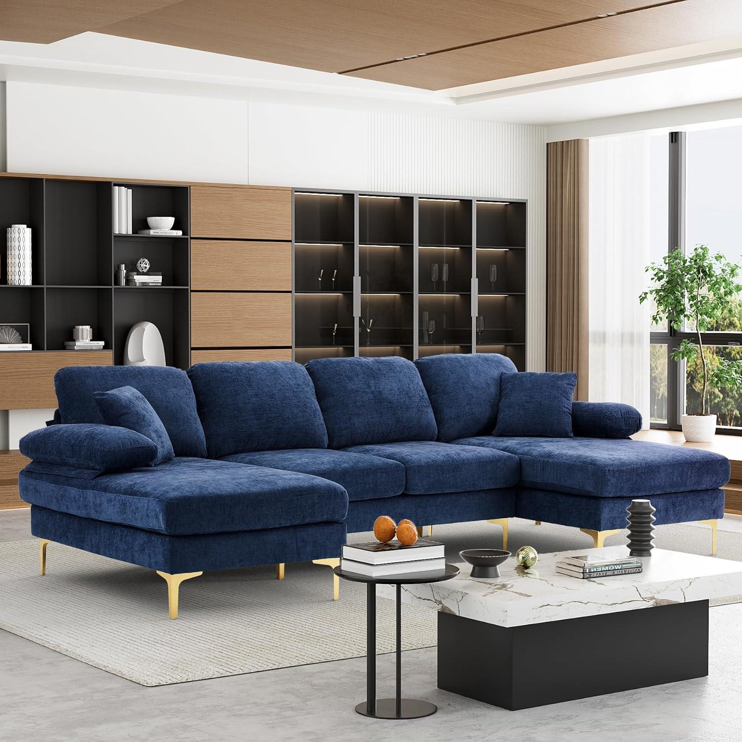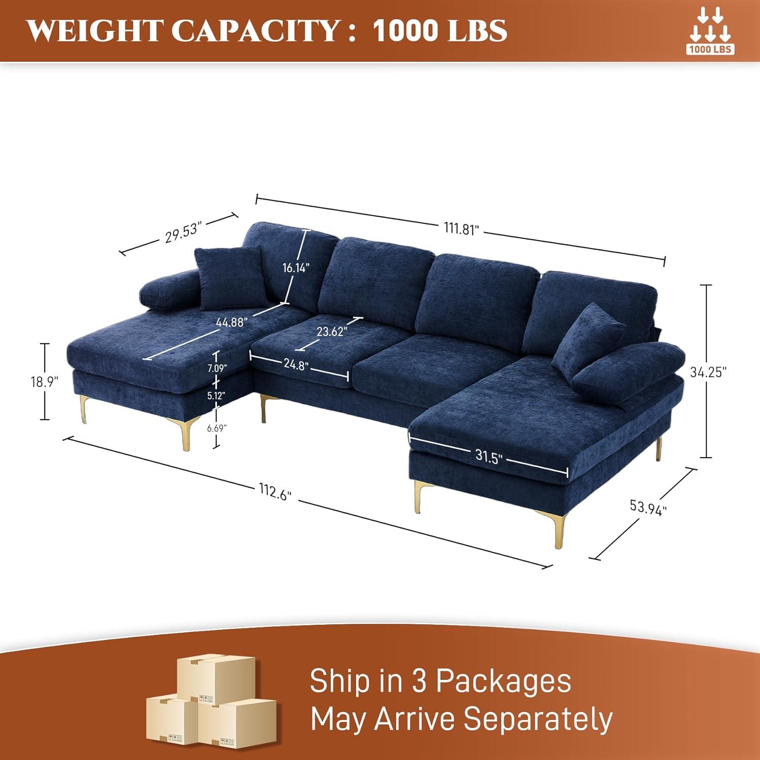 From the moment we unpacked this spacious sectional, its modern minimalist design immediately stood out.With smooth, clean lines and a bold blue chenille upholstery, it effortlessly blends with contemporary living spaces. The modular U-shaped layout, including a double chaise lounge, offers plenty of seating and lounging room, making it perfect for family gatherings or relaxing evenings. One practical feature we appreciated was the detachable soft armrests, which can double as comfy pillows or be removed entirely to maximize legroom—adding versatility to the overall experience.