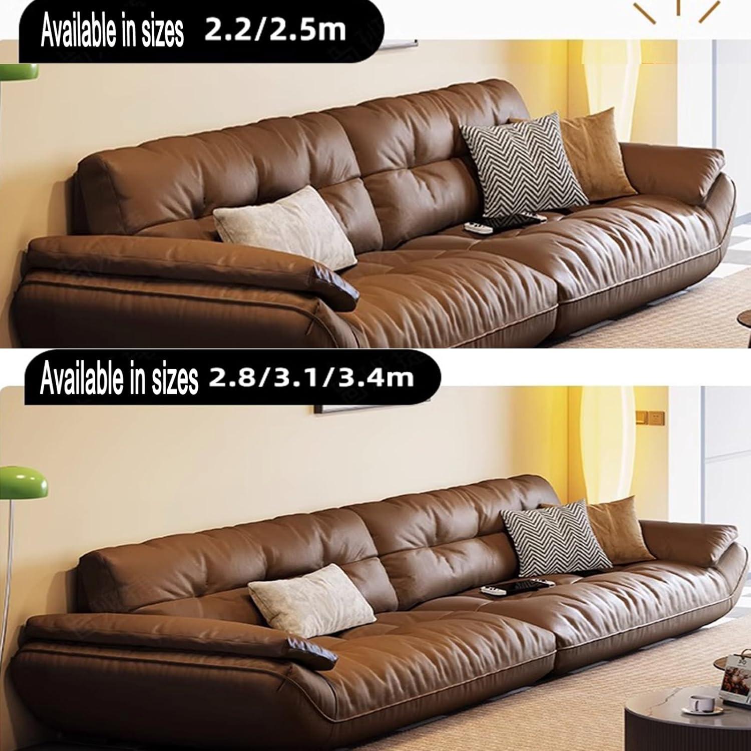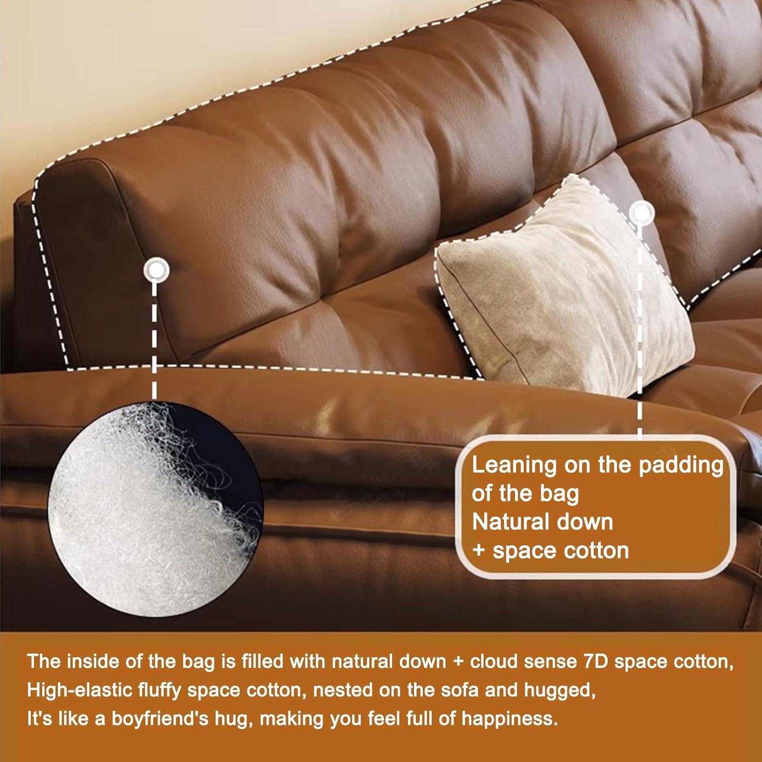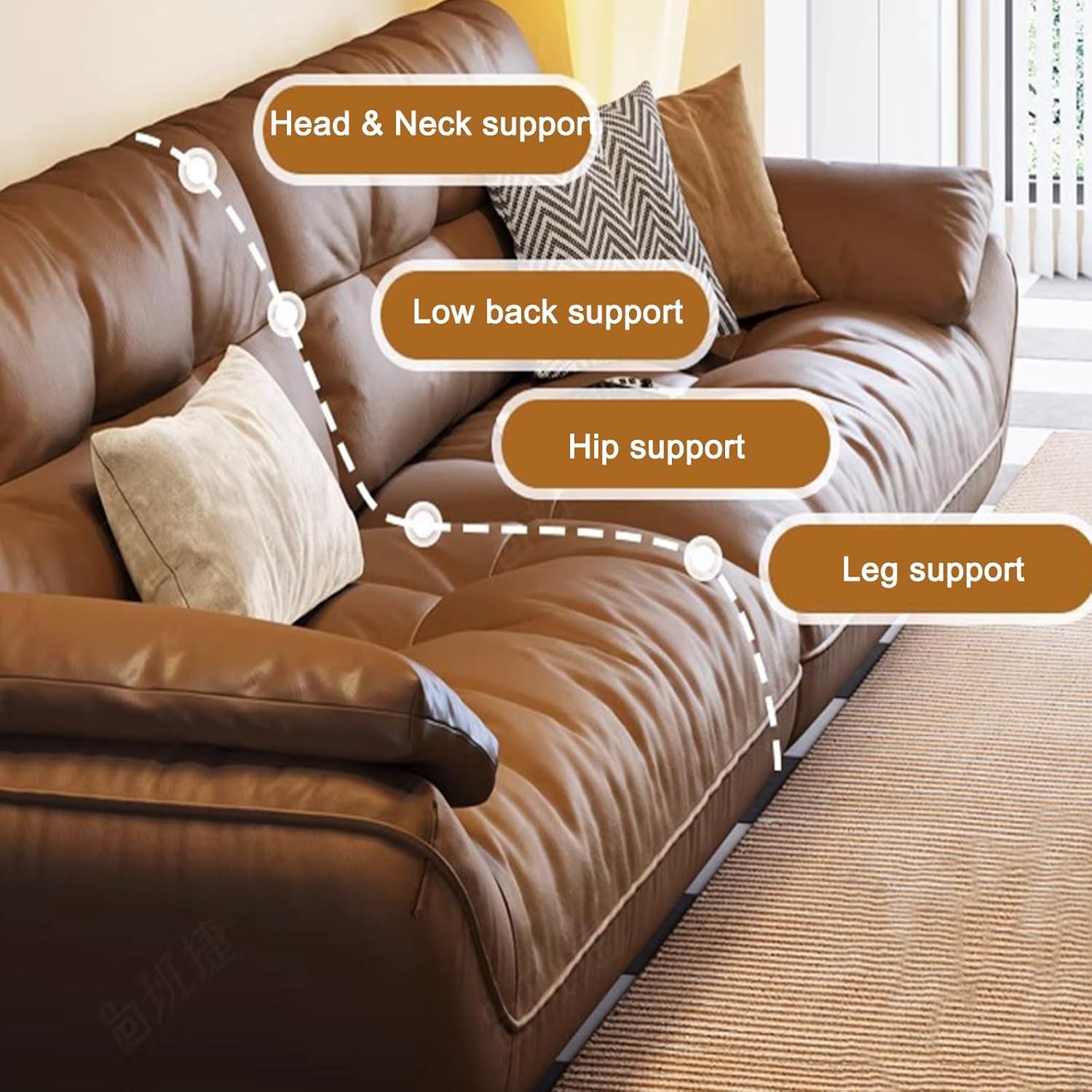 From the moment we set up the sofa, its minimalist Italian design captured our attention. The simple,clean lines blend effortlessly with various decor styles,making it a versatile centerpiece for any living room or even a compact apartment. The oversized chaise and generously padded armrests provide remarkable comfort whether we are lounging, reading, or hosting guests. The combination of the goose down backrest and soft leather upholstery creates a plush, inviting seating experience that’s perfect for extended relaxation.