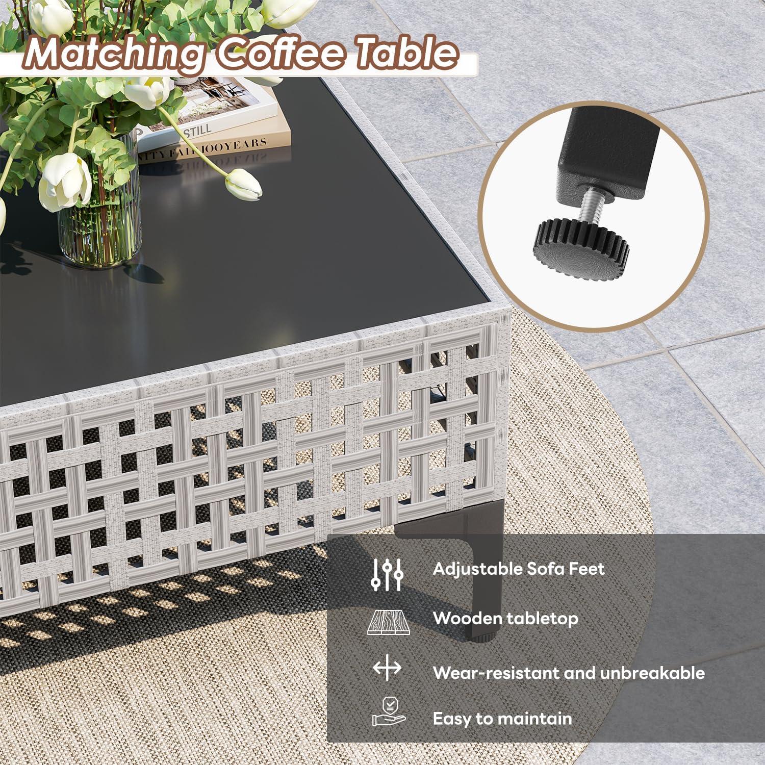 the coffee table serves as the anchor of this modular set,perfectly balancing style and functionality. Featuring a tempered glass top,it offers a smooth,easy-to-clean surface that withstands the outdoors without sacrificing aesthetic appeal.Its size comfortably accommodates snacks,drinks,and decor without overcrowding the seating area,making it an ideal centerpiece for casual gatherings or quiet afternoons by the pool. However,it’s vital to note the caution about weight distribution; placing overly heavy items on the table should be avoided to maintain stability and prevent tipping.
