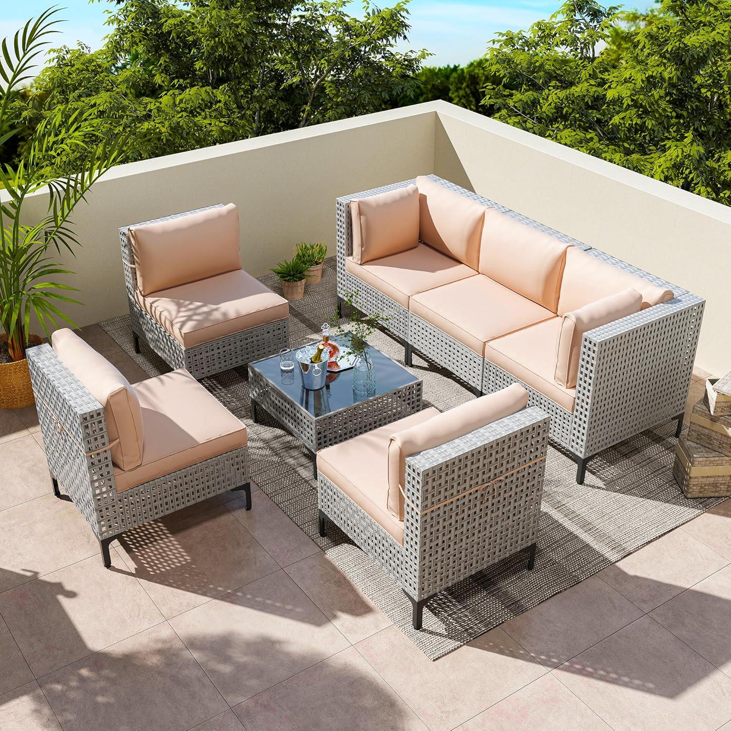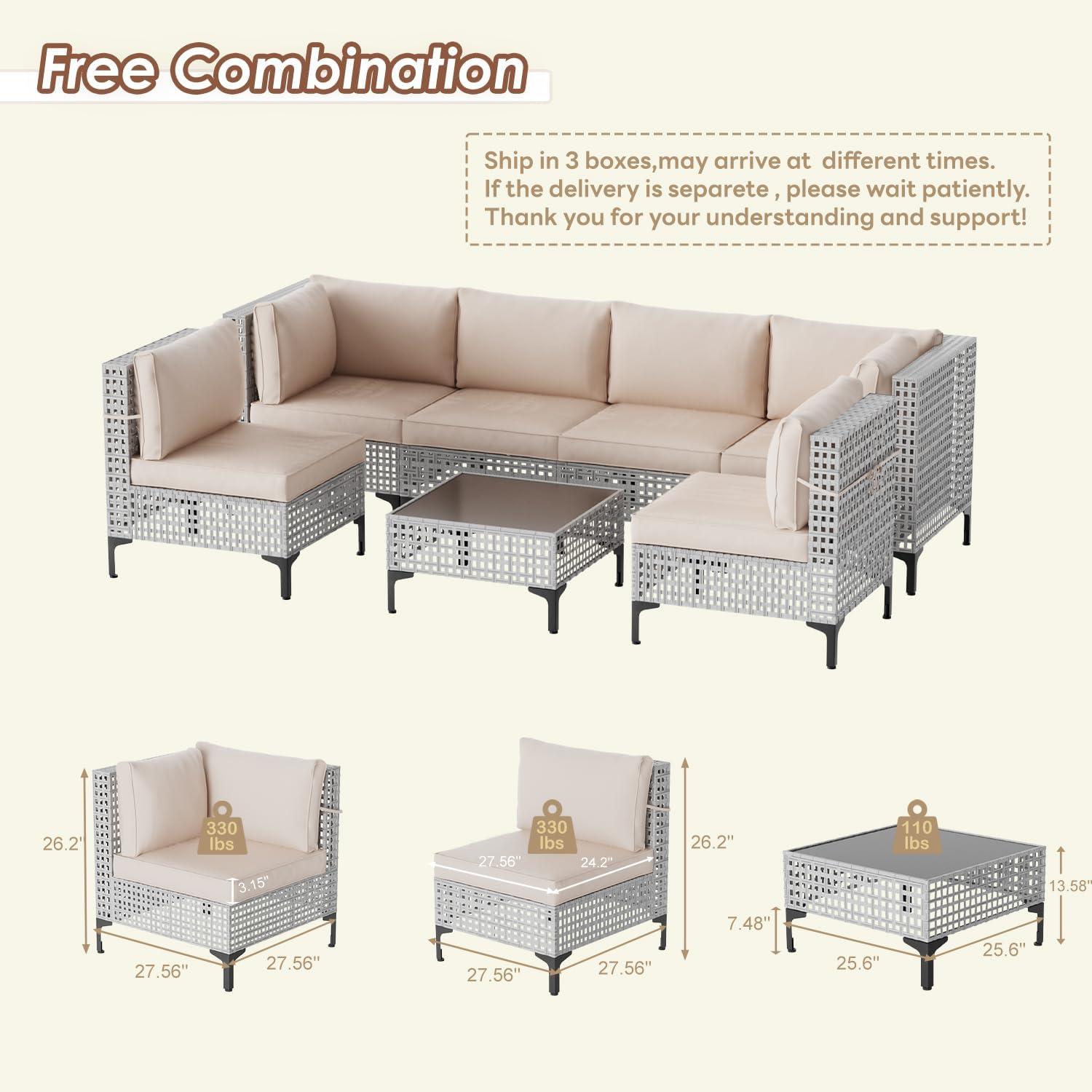 We recently had the chance to set up and spend time with the 7-Piece Outdoor Patio Furniture Set, and we’re excited to share our firsthand experience. this modular sectional sofa, crafted from all-weather PE rattan with plush, thick cushions, promises both style and durability for any outdoor space—whether it’s a poolside deck, backyard, or porch. Over the past few weeks, we explored its comfort, adaptability, and weather-resistant features, putting it to the test in various layouts and weather conditions. Join us as we dive into how this versatile set performs in real life and whether it lives up to its promises of luxury and longevity.