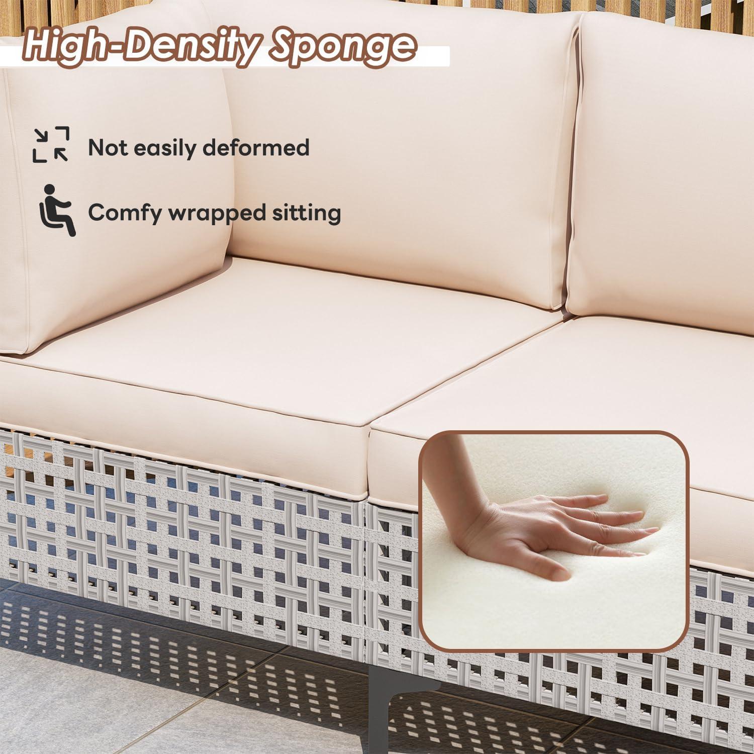 One of the standout features that immediately impressed us is the 4-inch thick seat cushions that create an exceptionally plush seating experience.These cushions feel like sinking into a cloud, perfectly balancing softness and support. Wrapped in machine-washable covers made from quick-dry fabric, they stay fresh and vibrant even after exposure to sun and humidity. The beige covers not only complement the modern gray rattan frame but also bring an inviting, cozy aesthetic to our outdoor space. Whether we’re lounging poolside or enjoying a casual chat on the porch,the cushions maintain their shape and comfort without feeling worn down.